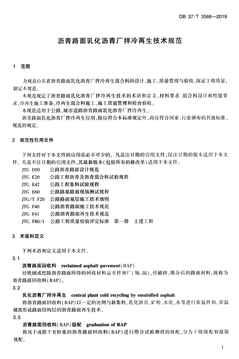书名:沥青路面乳化沥青厂拌冷再生技术规范