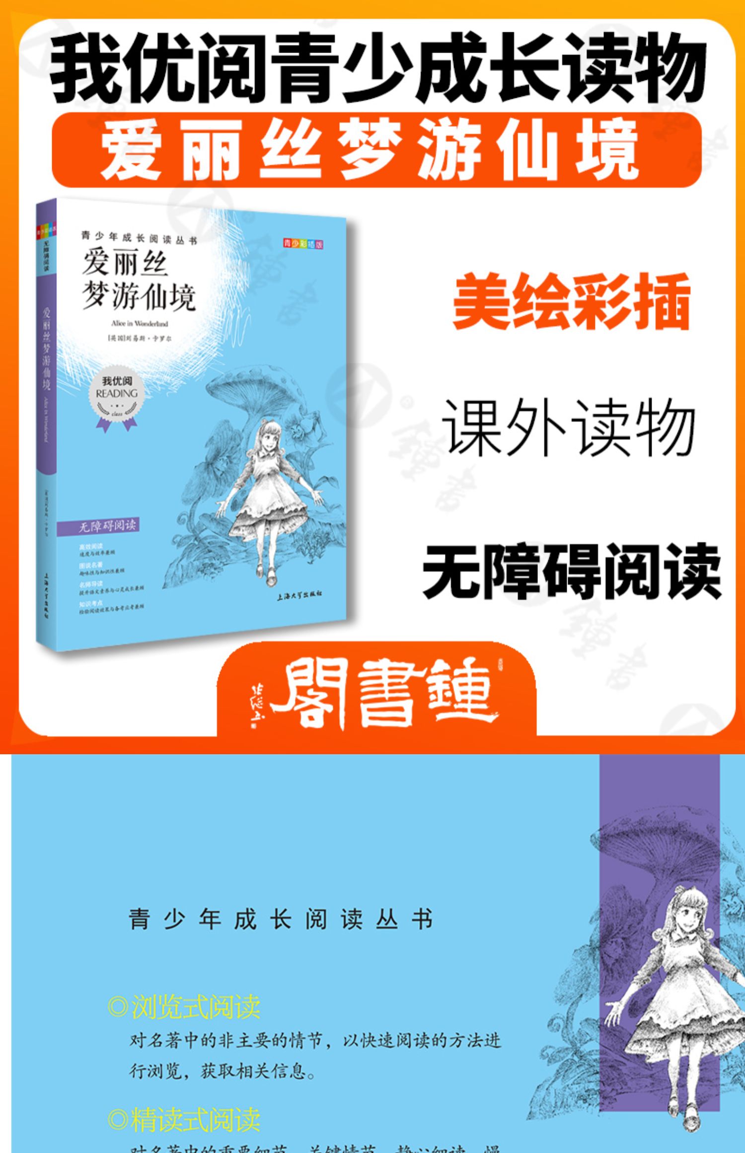 爱丽丝梦游仙境 钟书正品正版书籍 我优阅青少彩插版无障碍课外阅读 小学生三年级四五六年级3456年级课外文学儿童故事读物图书籍
