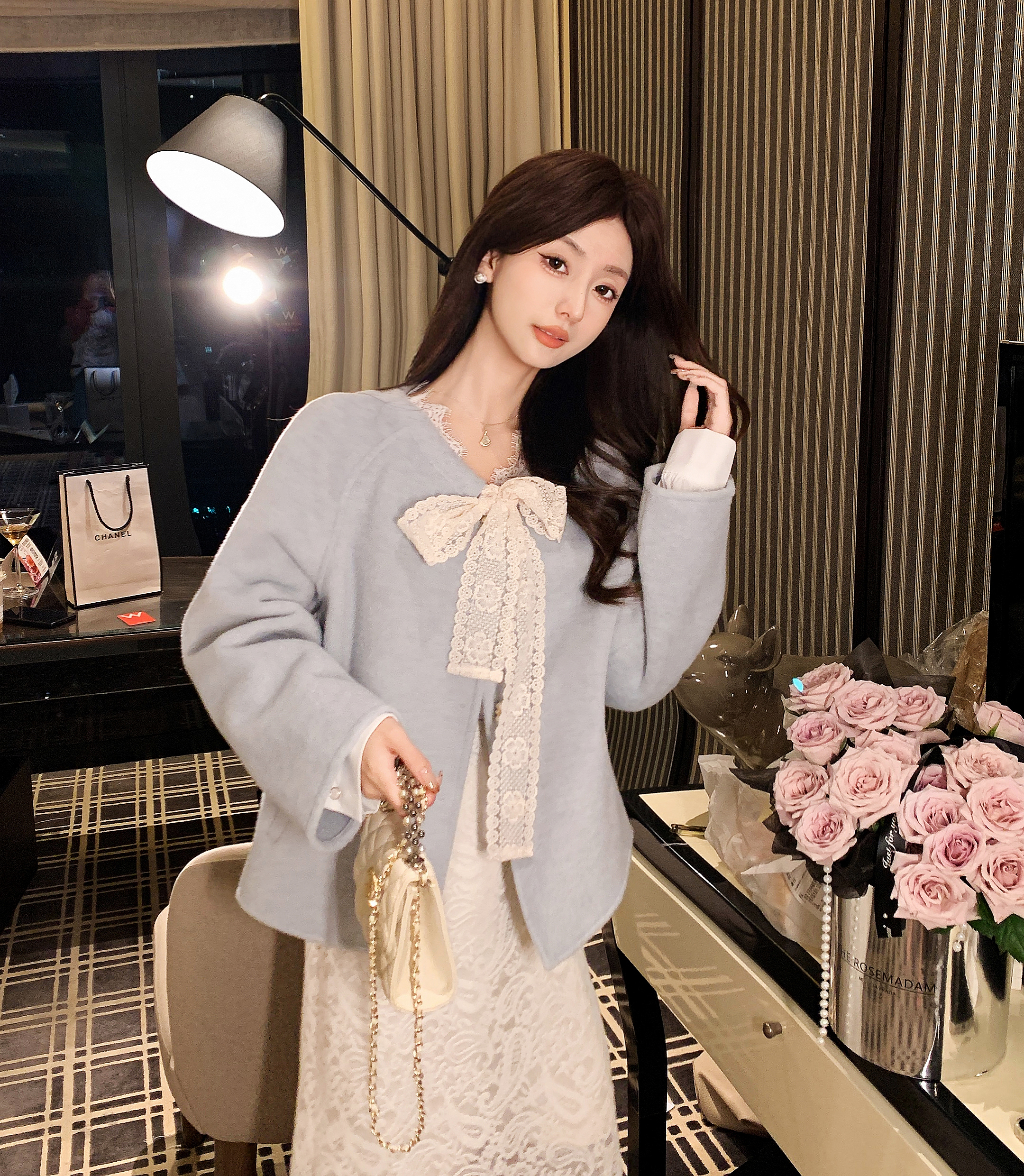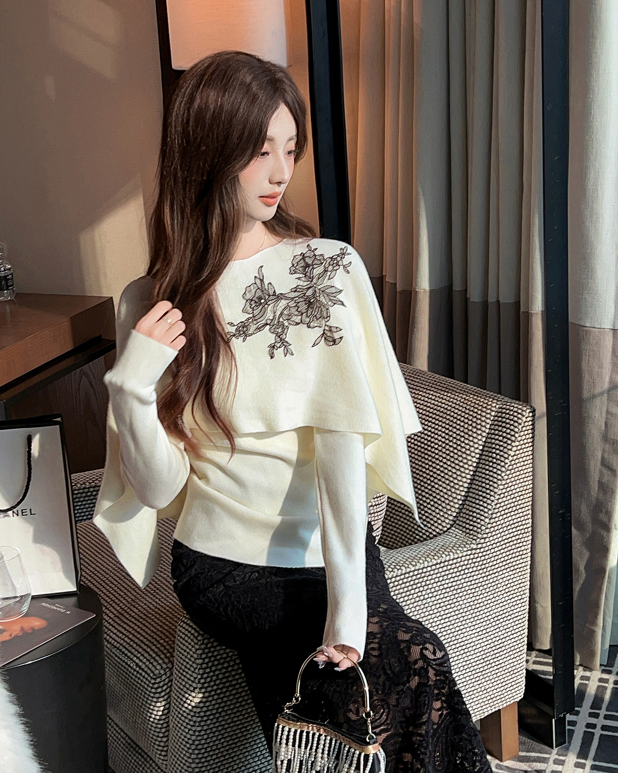 张心子【花与爱丽丝】圆领立体花蕾丝减龄软糯针织衫上衣 U2603041