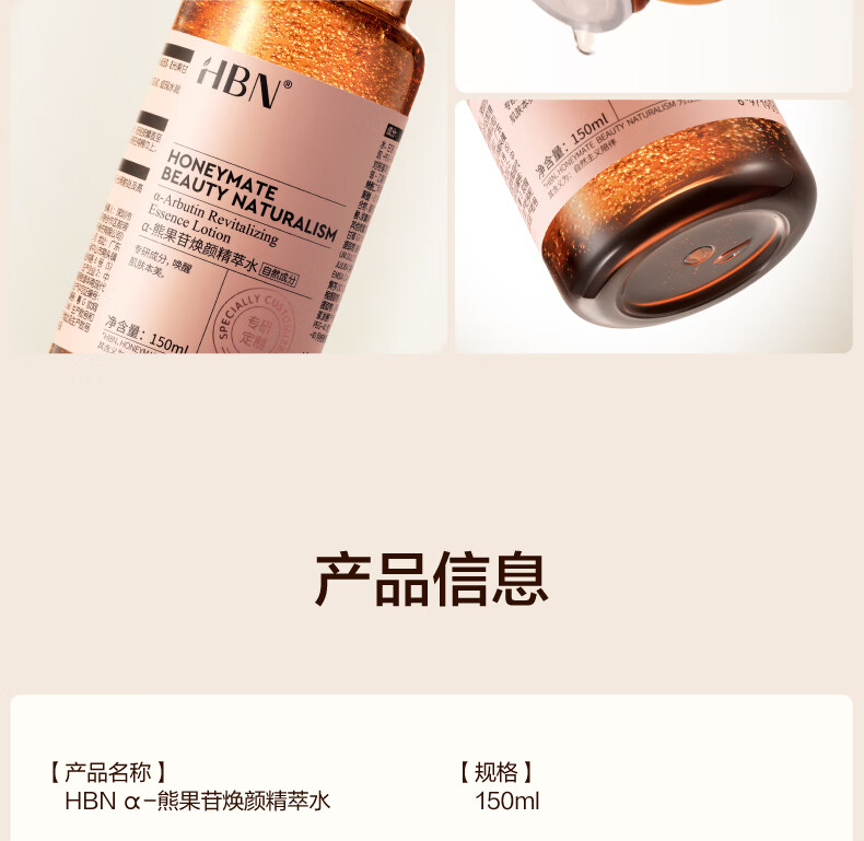 HBN α-熊果苷光透焕白精萃水150ml/瓶(发光水2.0)