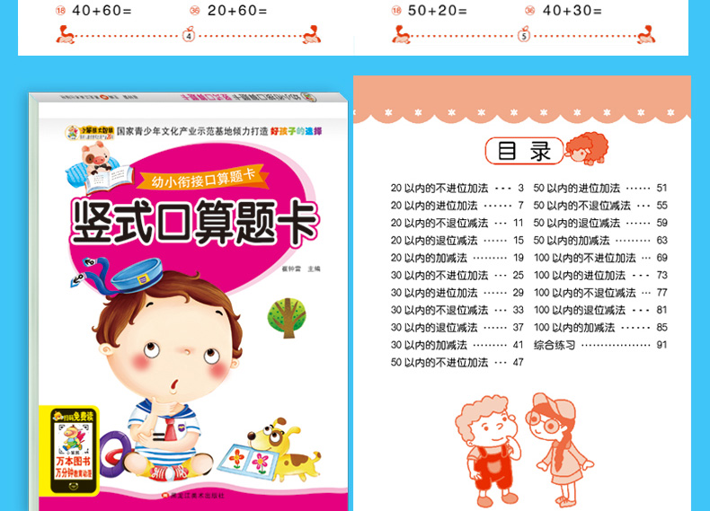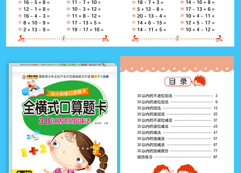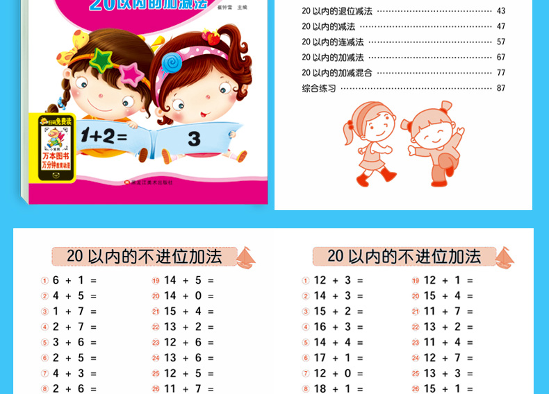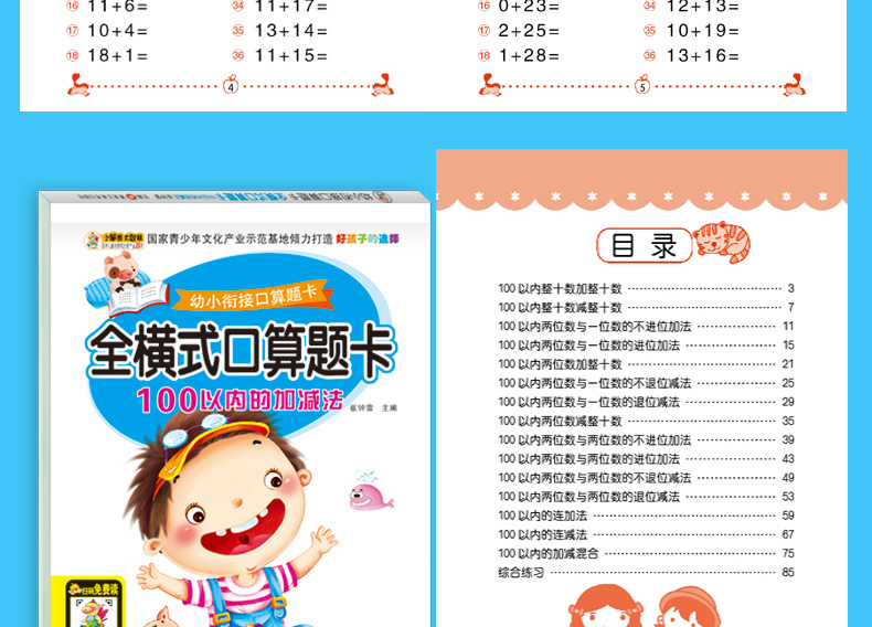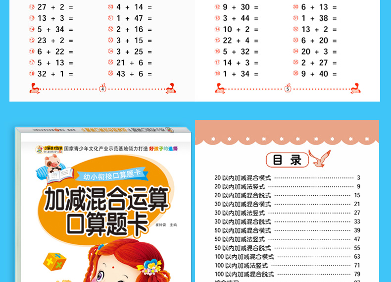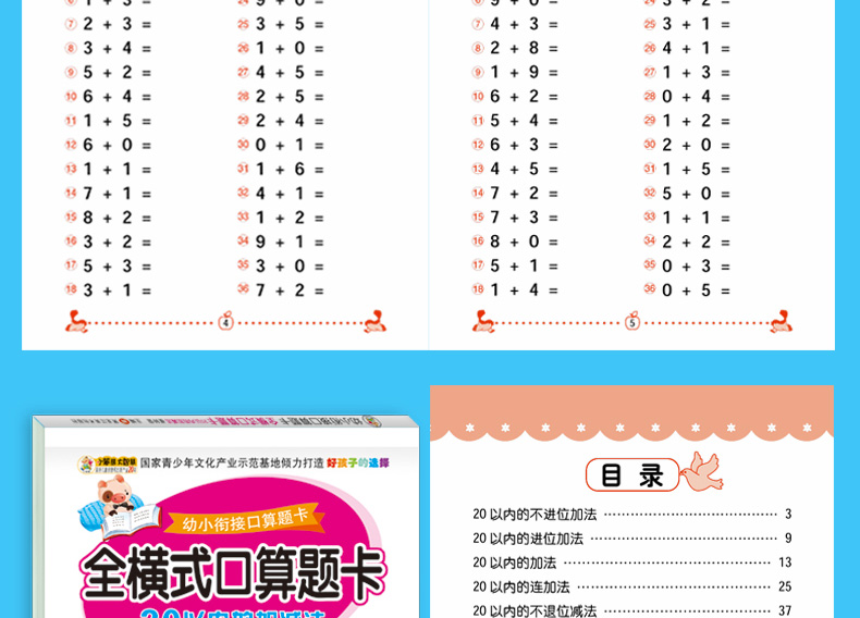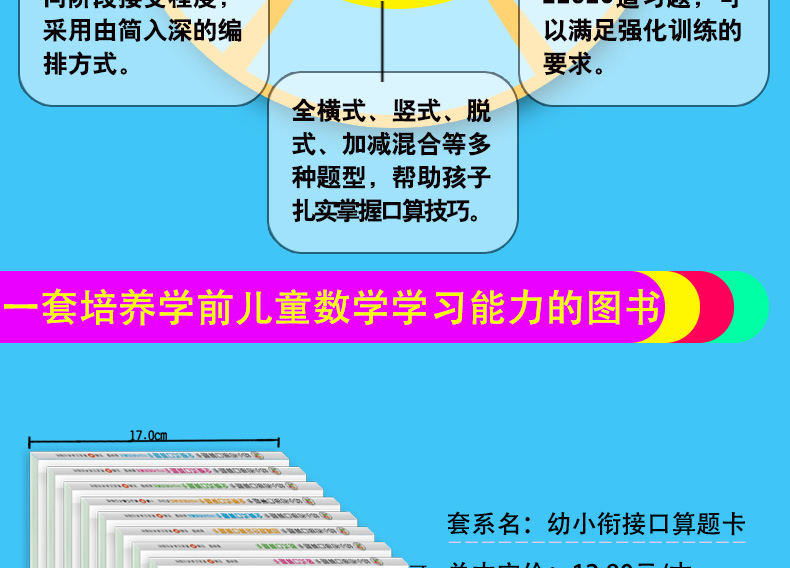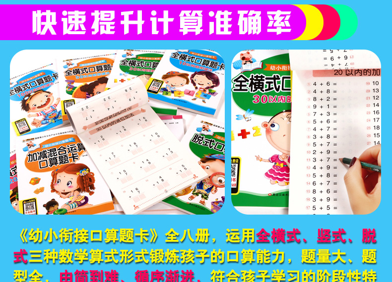 全套8册 全横式口算题卡10 20 100以内加减法 幼升小练习册学前班小学一年级 幼小衔接数学思维训练一日一练幼儿园大班算数算术本