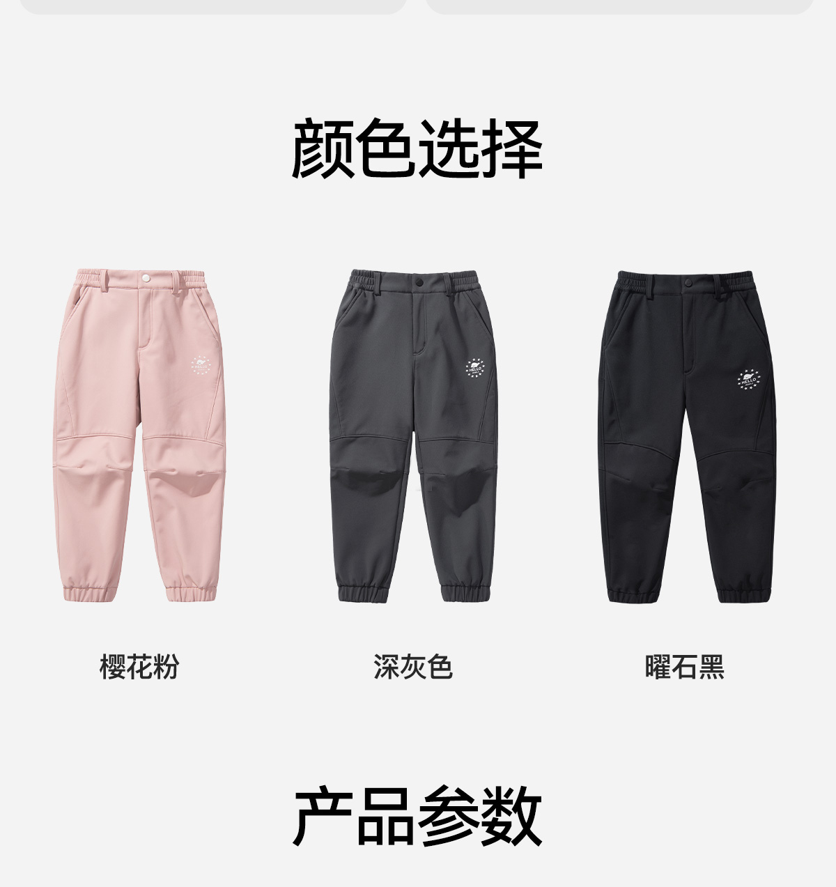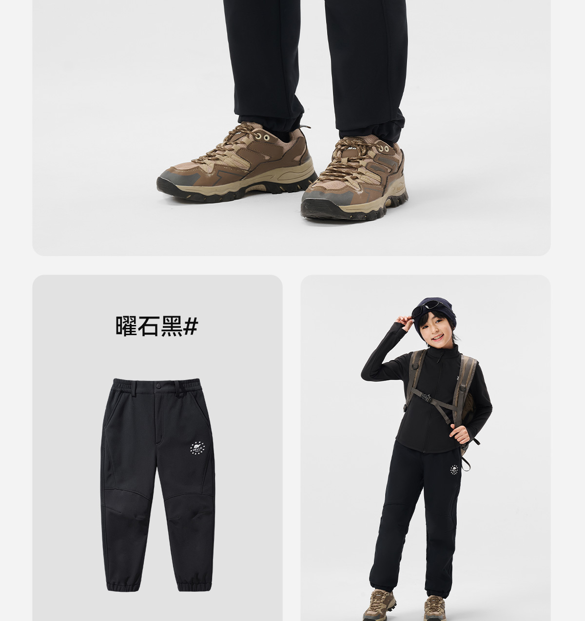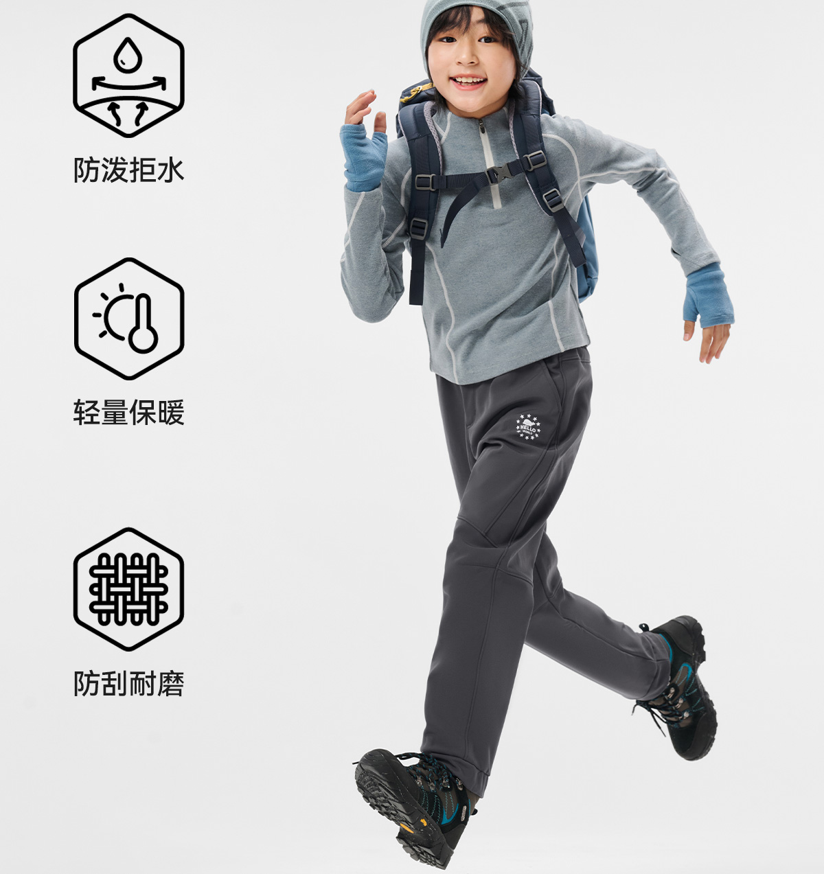 伯希和户外儿童软壳裤男童女童防风透气休闲长裤柔软亲肤运动裤子