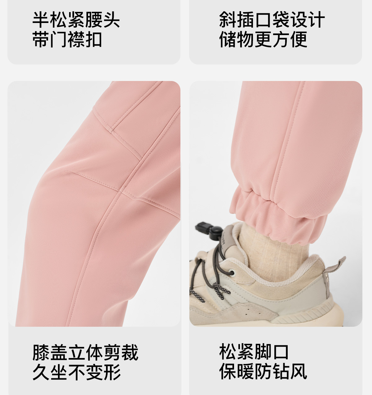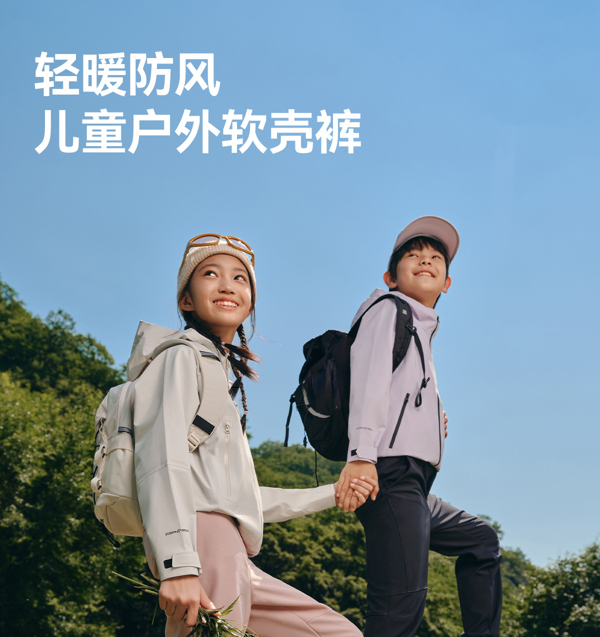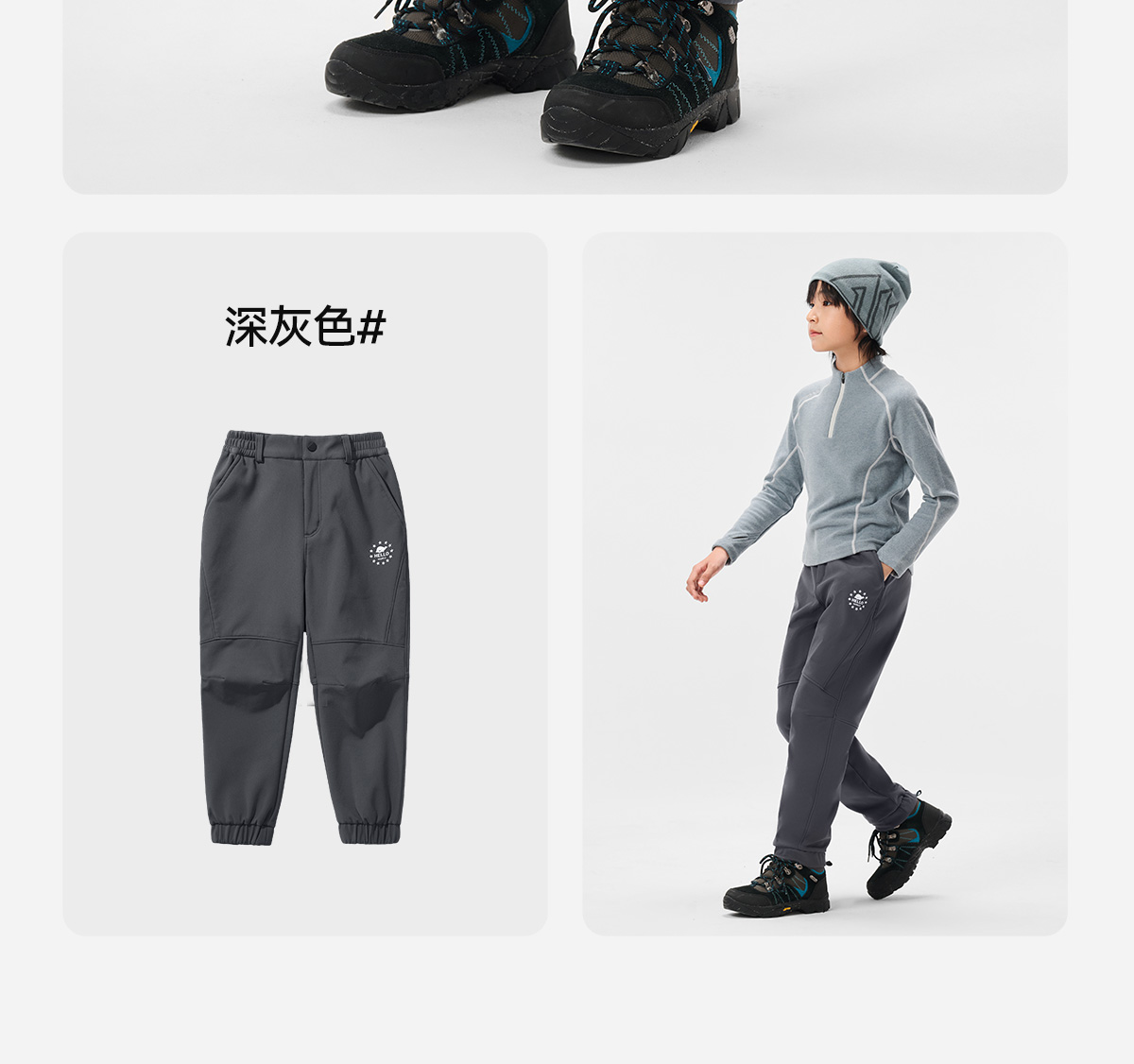 伯希和户外儿童软壳裤男童女童防风透气休闲长裤柔软亲肤运动裤子