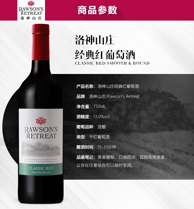 (6支)奔富洛神山庄西拉赤霞珠干红葡萄酒