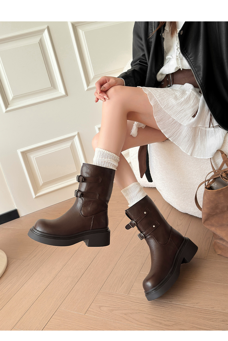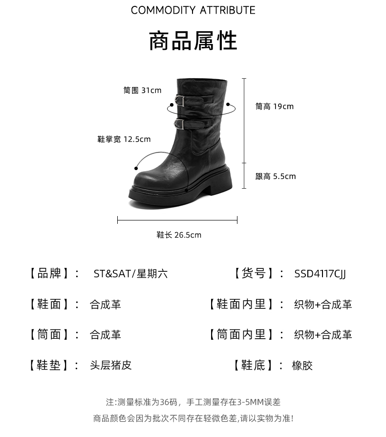 【筒高可选】星期六酷飒风双扣厚底时装短靴SSD4117CJJ/SSD4117CJL
