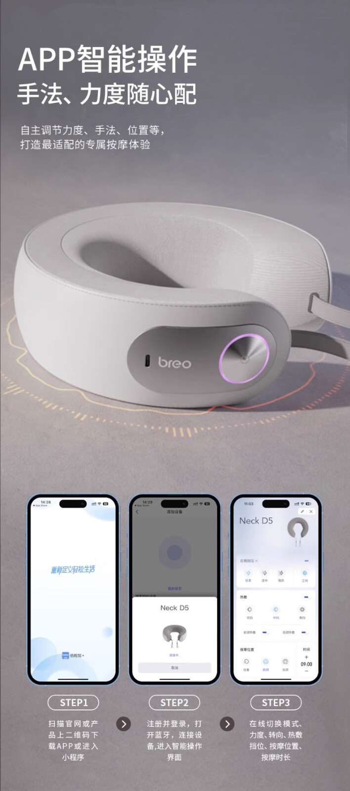 倍轻松 Neck D5 颈部按摩器 加热颈椎 肩颈斜方肌揉捏 无线APP智能护颈按摩仪
