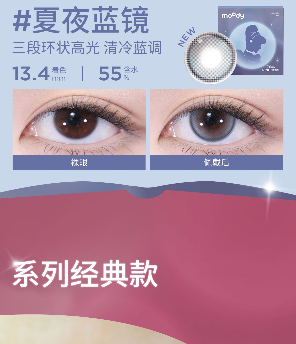 moody 隐形眼镜硅水凝胶日抛S系列水润透明片 10 片 MOODYBLUE