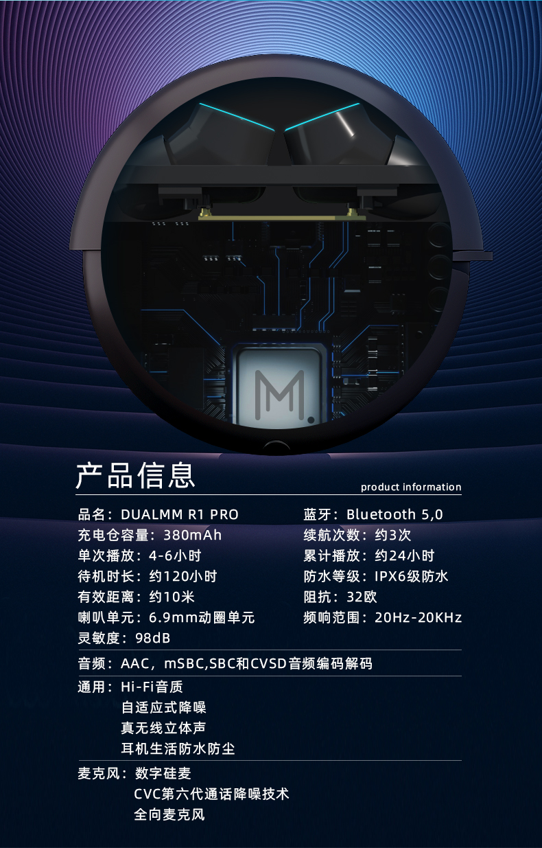 DualMM渡漫R1 PRO真无线蓝牙耳机入耳式防水运动游戏低延迟高颜值