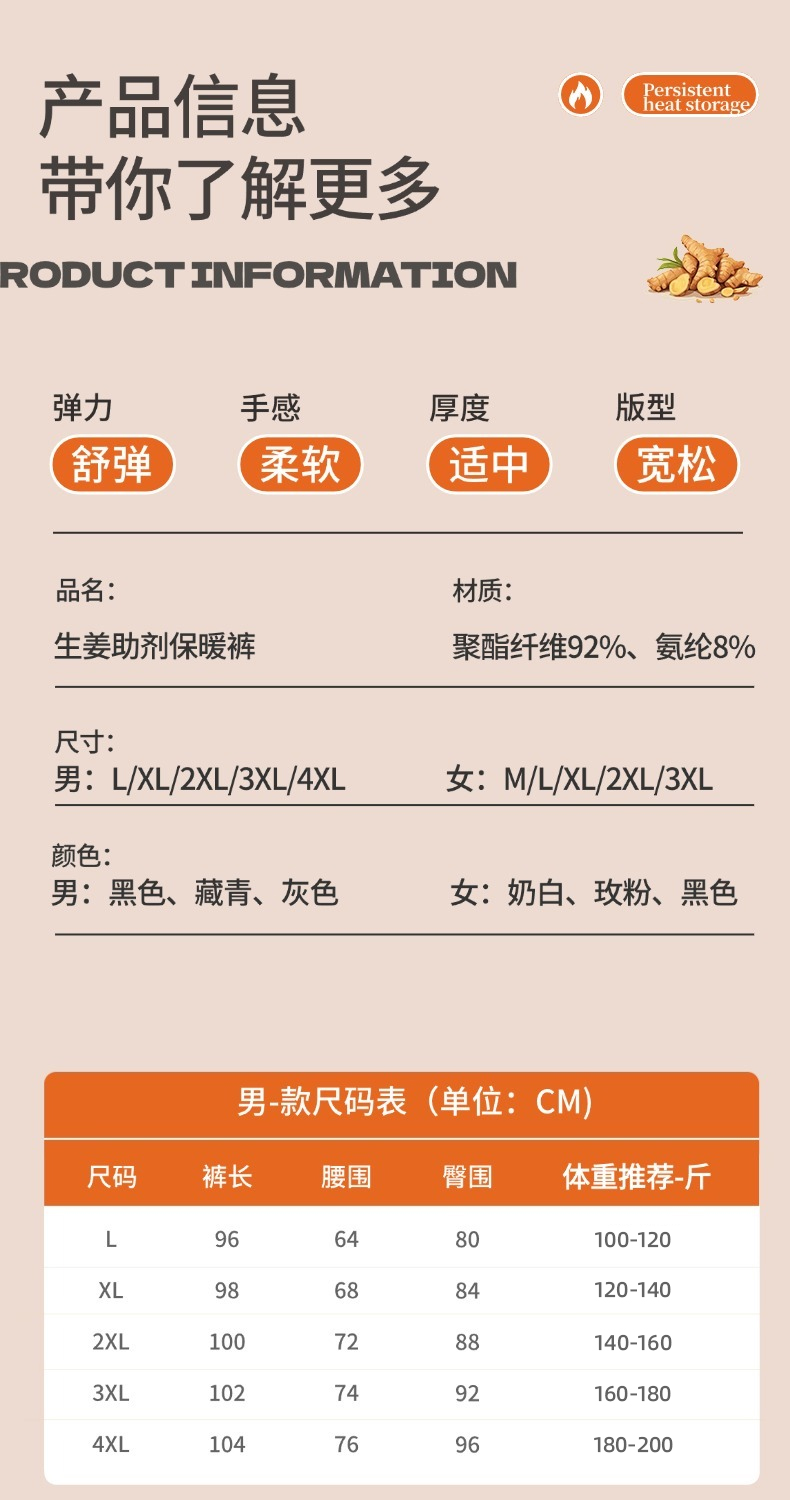 【清仓!两条39元! 单拍不发,加购物车享满减】茶稚 暖姜恒温保暖裤 情侣款双面磨绒面料 细腻轻糯,轻松御寒;高弹贴合,10A抗jun