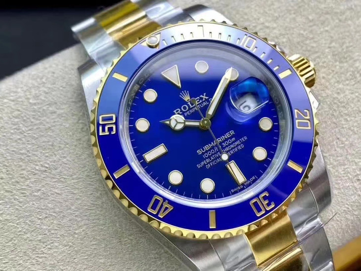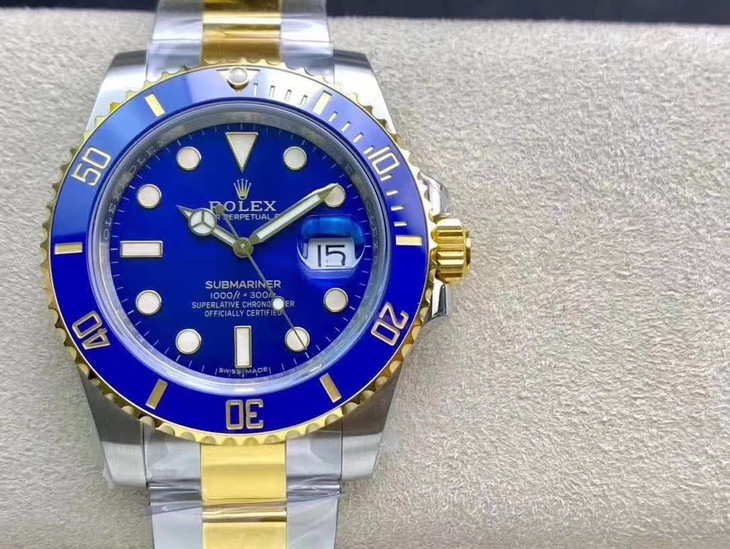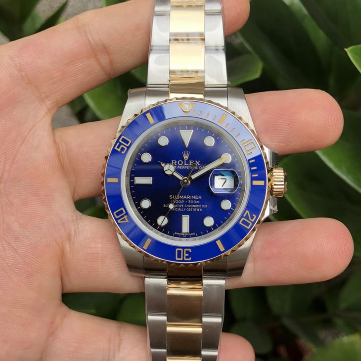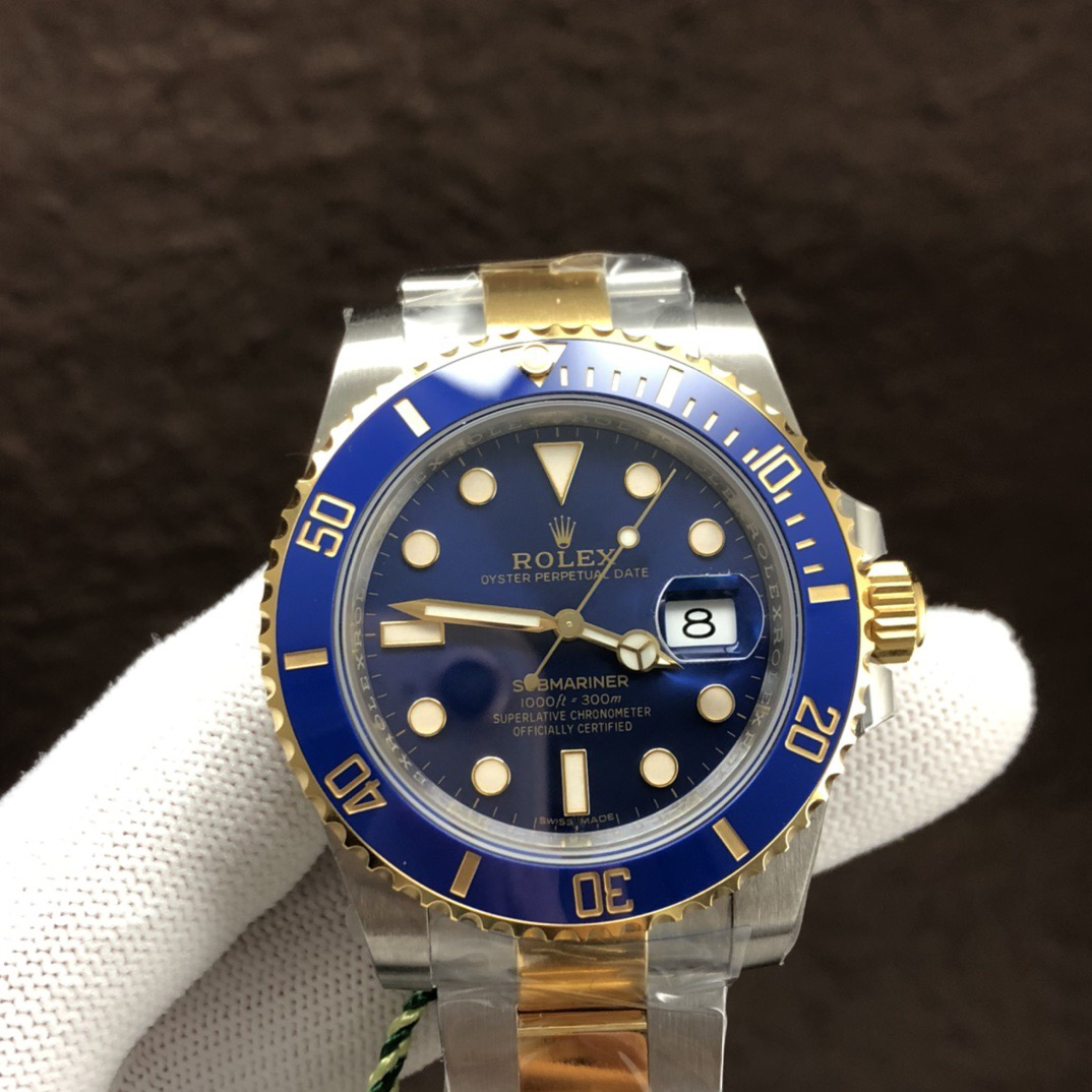 N厂v10包金版水鬼!top品质!非壕勿扰!V10版!劳力士经典SUB系列,蓝水鬼间金款,市场好版本 !材质真正18K包金,搭载原装进口2836机械机芯 ,更高要求可选装瑞士进口机芯(eta机芯)