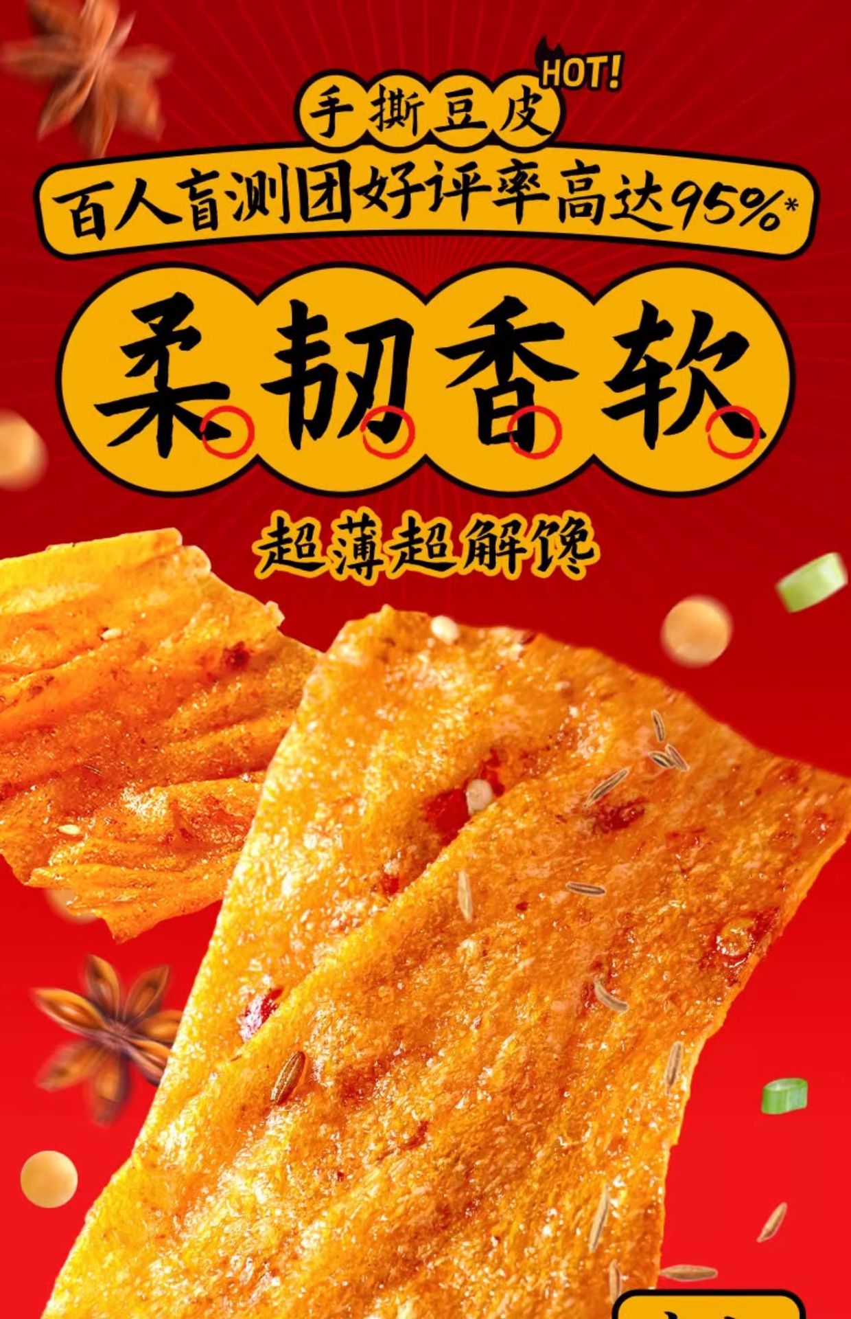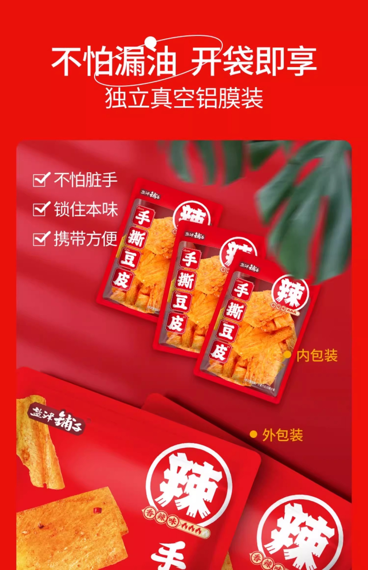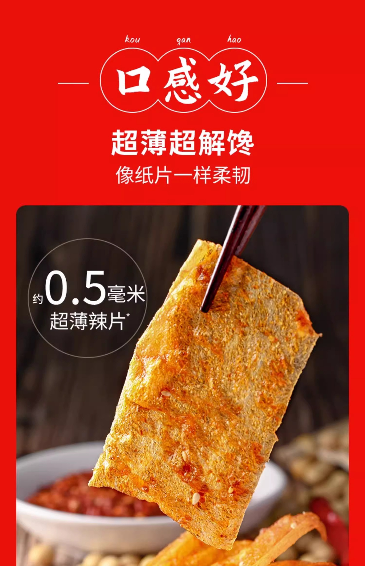 【60袋更超值❗香辣手撕豆皮】童年经典辣片「超薄超解馋」甄选品质原料制作,非油炸更健康,手撕豆皮麻辣网红老式辣条,童年香辣怀旧解馋零食小吃L