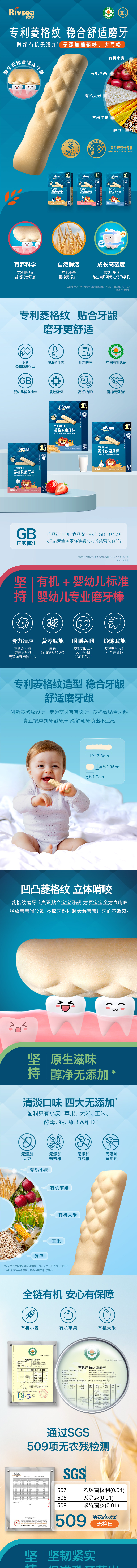 【限时3件8折】禾泱泱婴幼儿有机菱格纹磨牙棒宝宝辅食婴儿磨牙饼干无添加盐零食