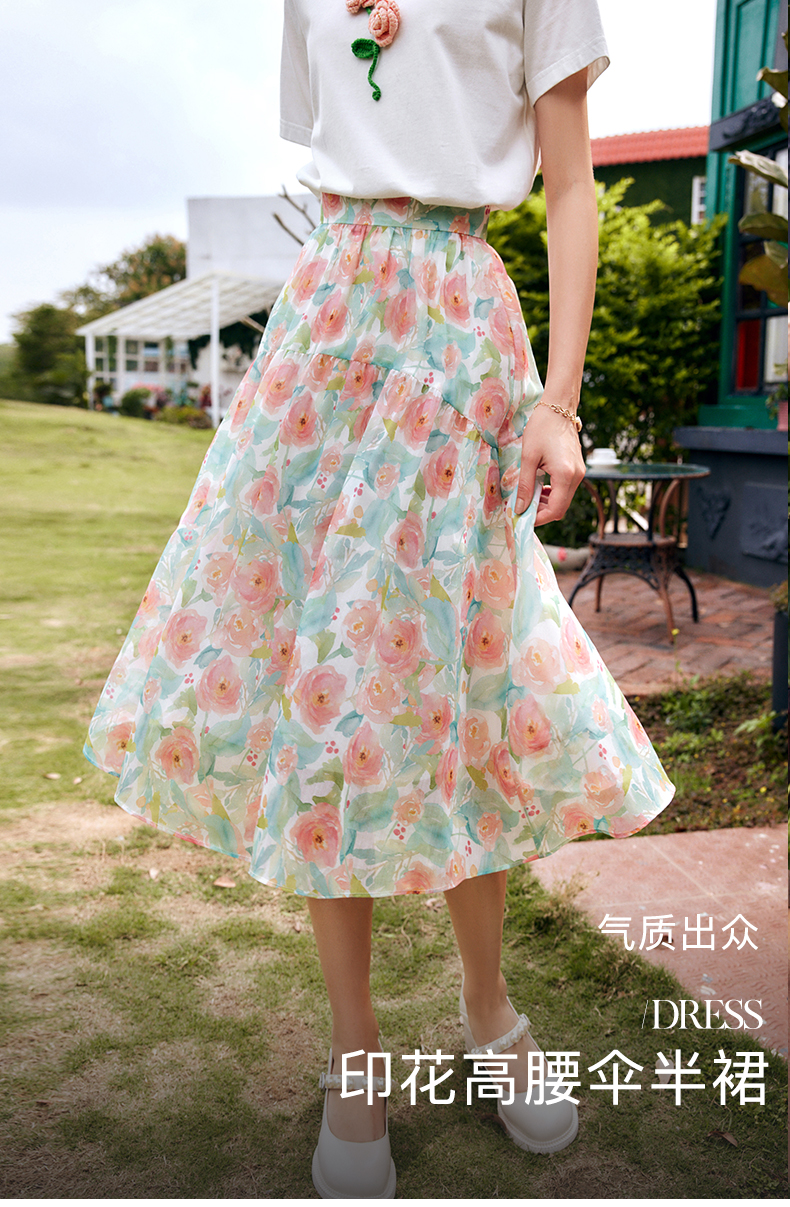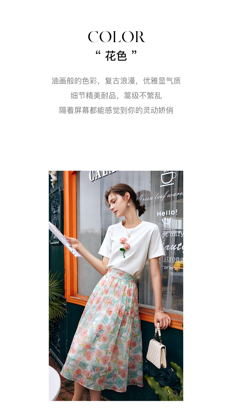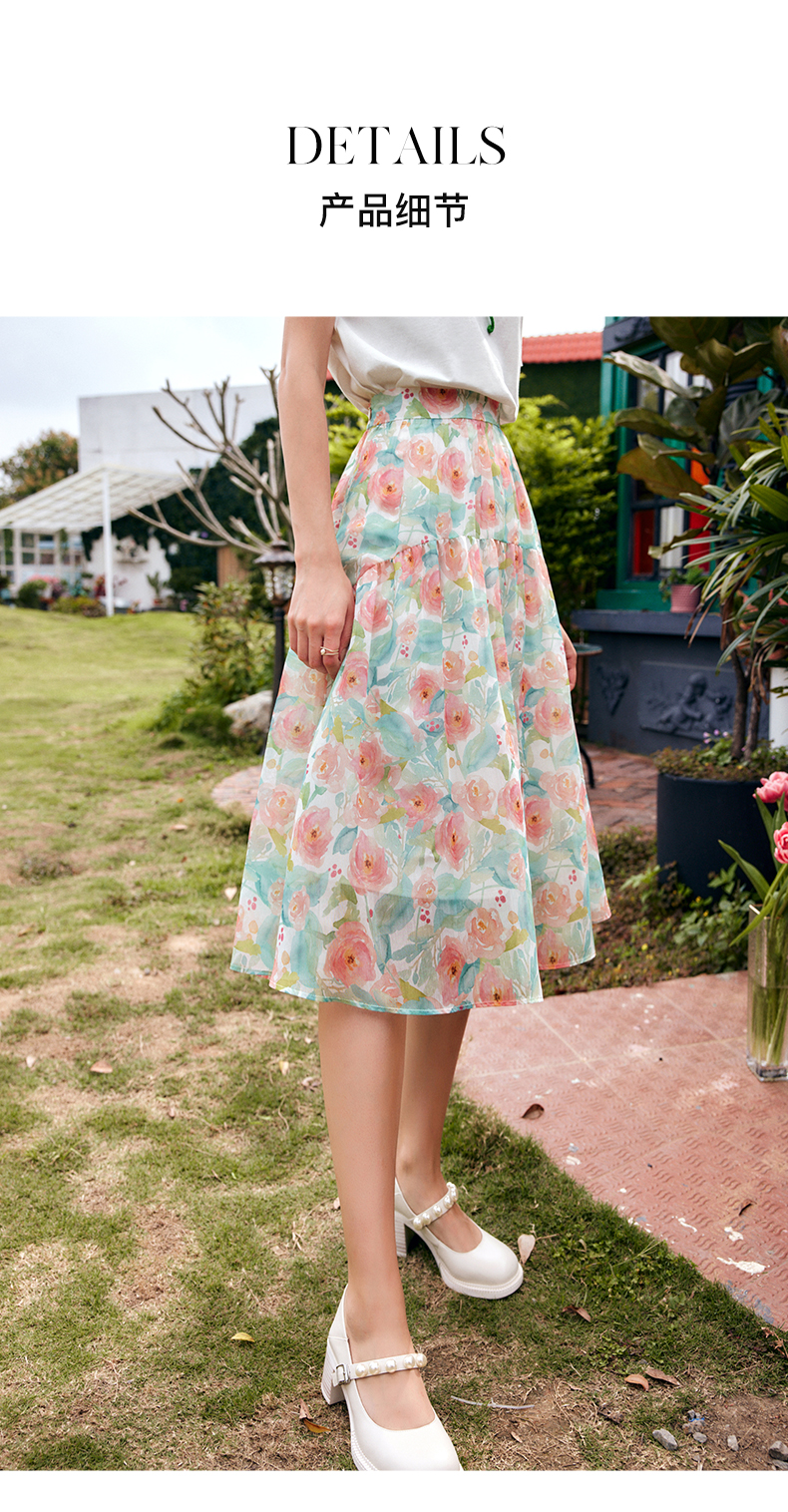 欧芮儿OLrain法式碎花半身裙女夏季2022年新款复古小个子a字裙
