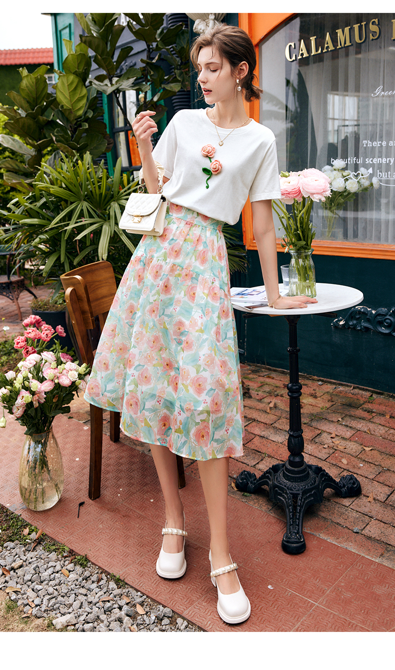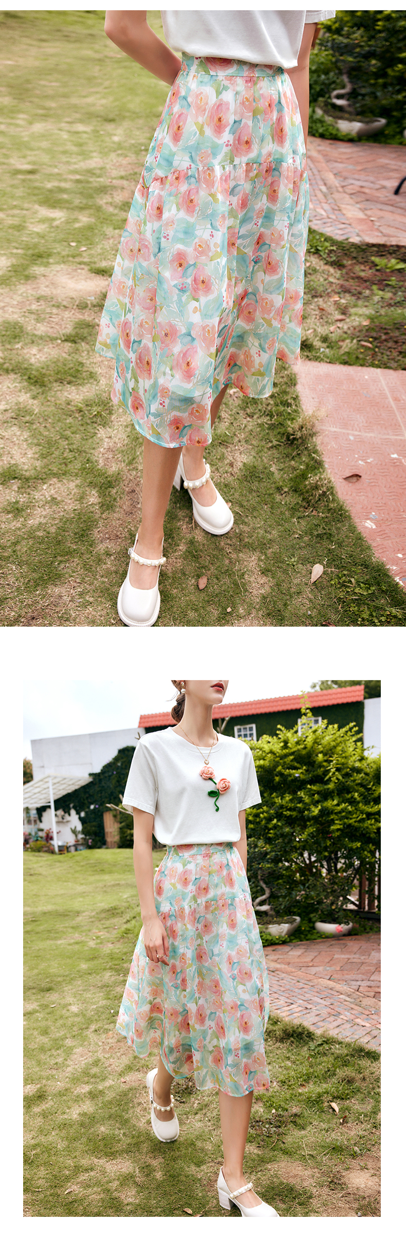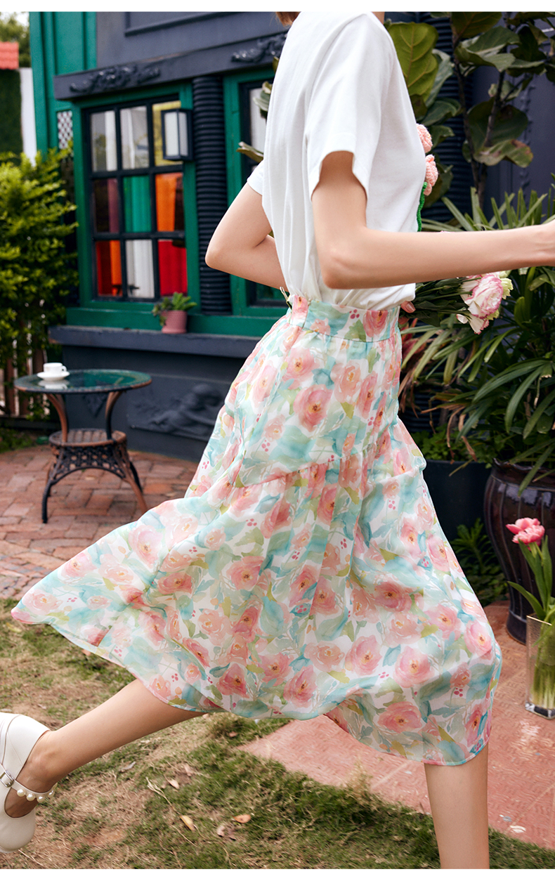 欧芮儿OLrain法式碎花半身裙女夏季2022年新款复古小个子a字裙