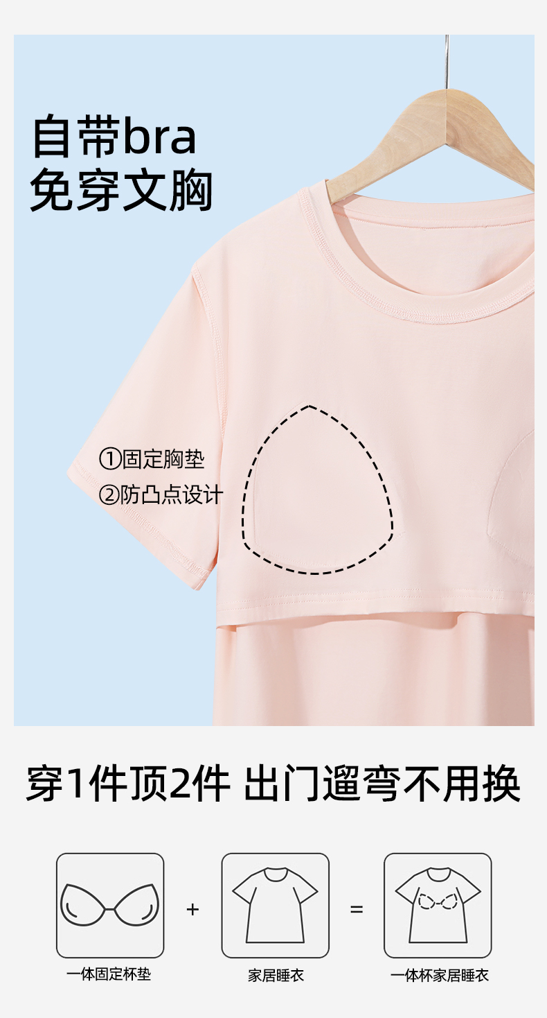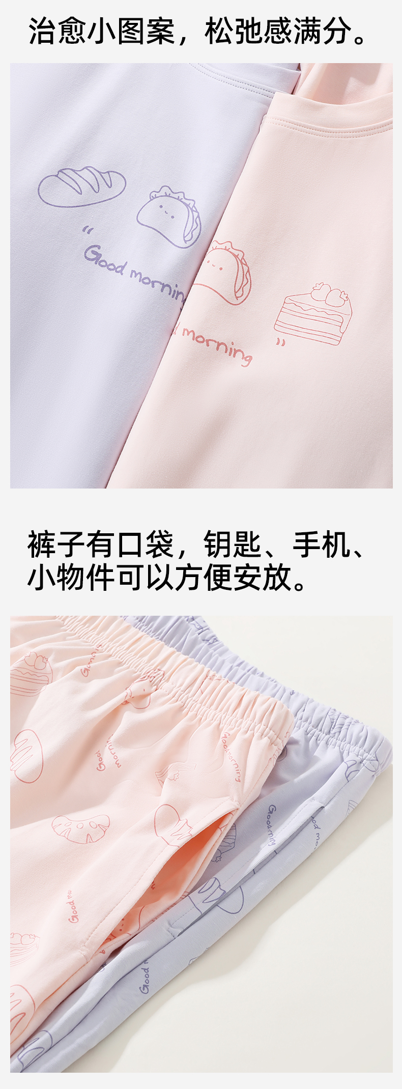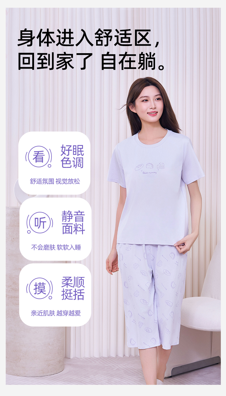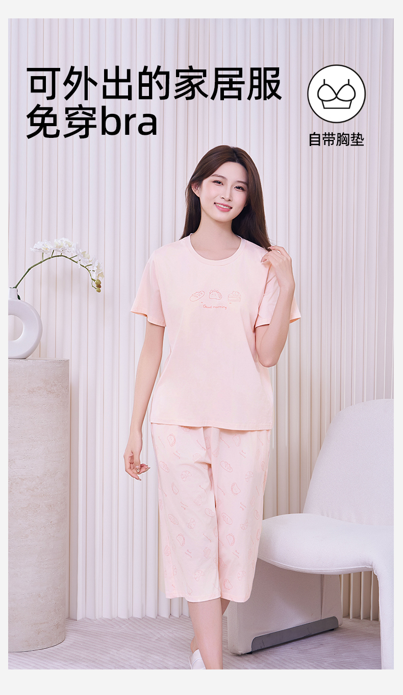 【商场同款】熳洁儿 带杯垫95棉春夏新款短袖七分裤套装免穿文胸26203213