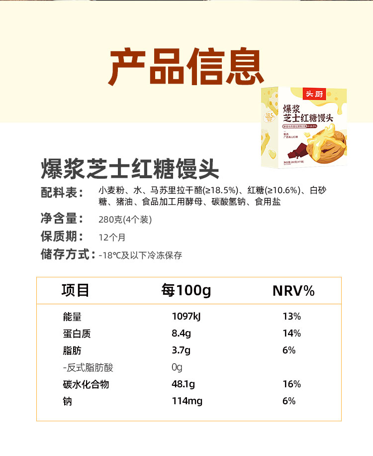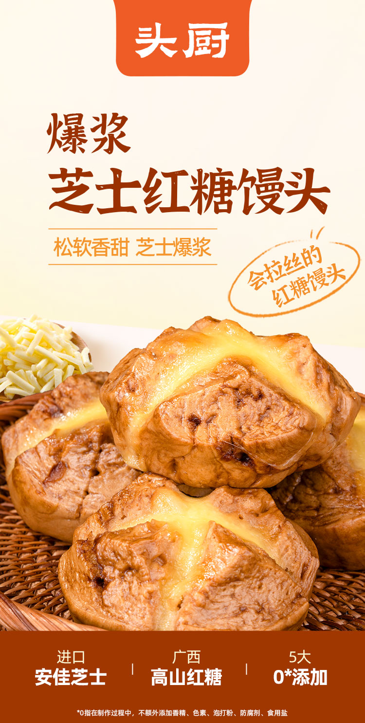 【头厨新品-拍立送】头厨|手作奶酪馒头+红糖爆浆馒头组合