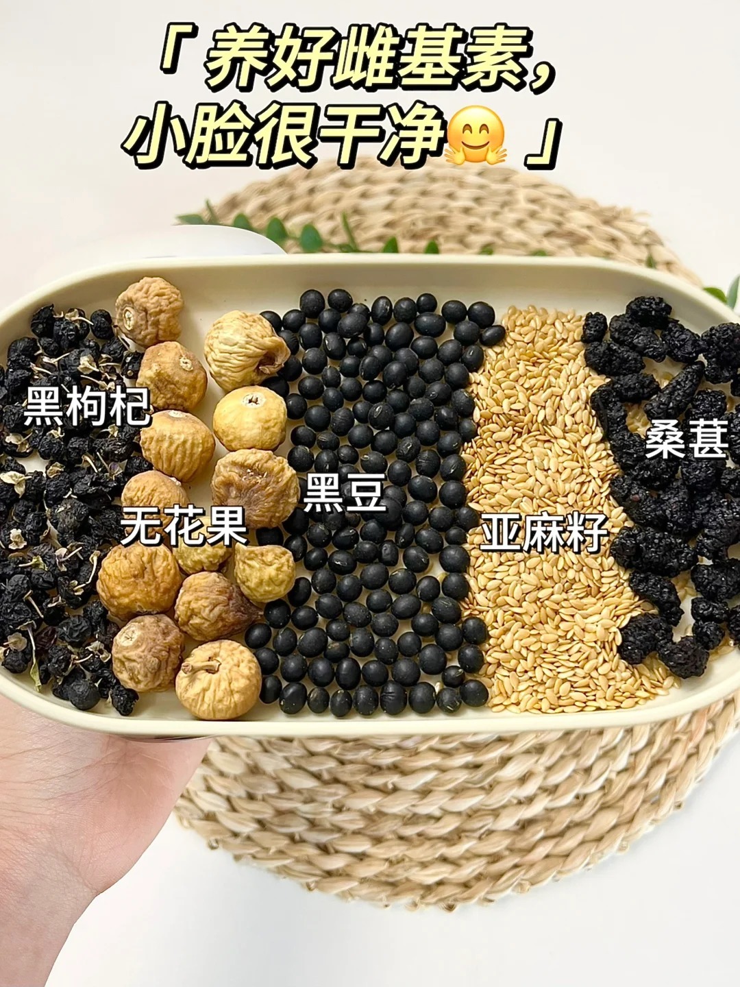 黑豆、黑桑葚、黑枸杞、无花果、亚麻籽等