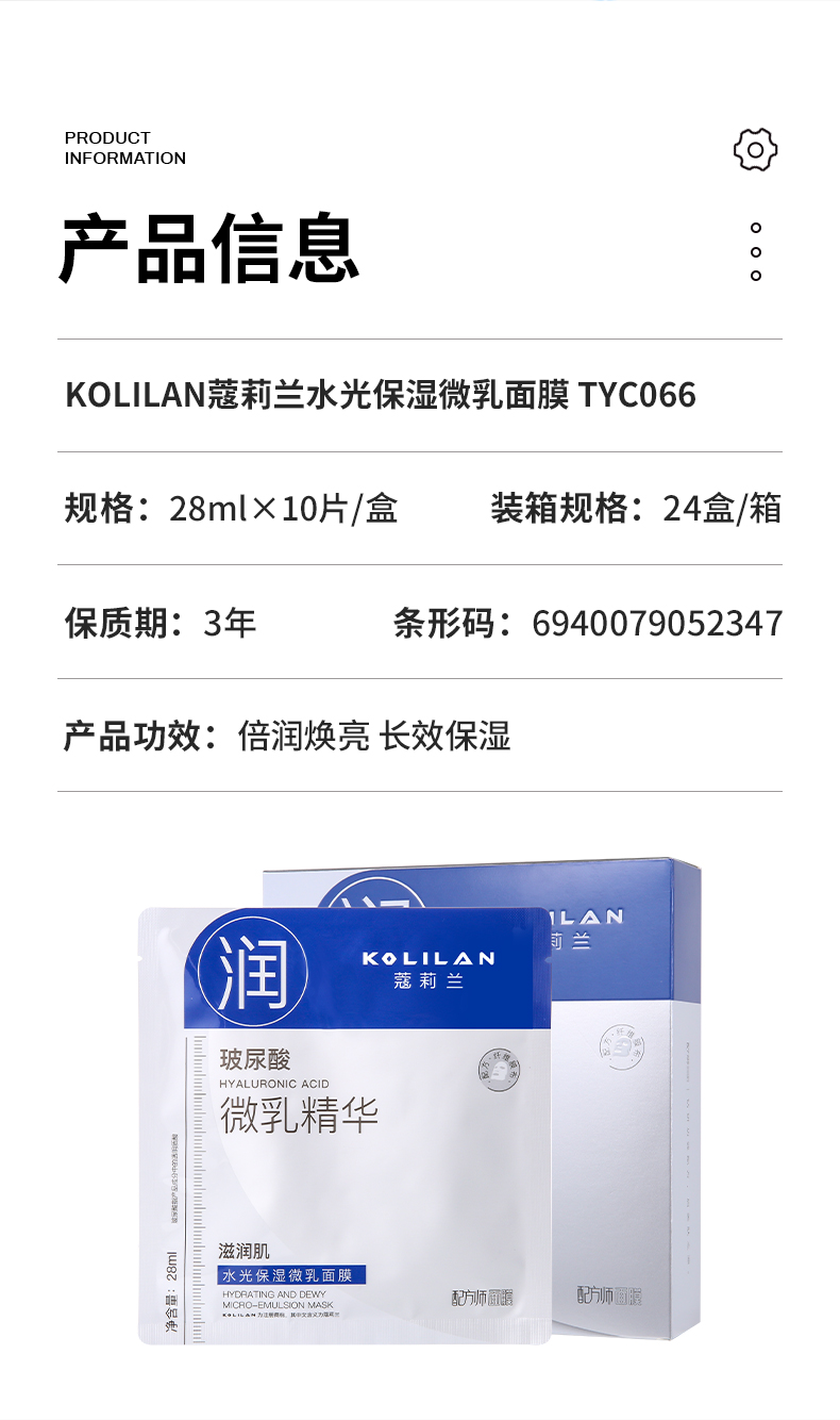 蔻莉兰(配方师系列)水光保湿微乳面膜28ml×10片 TYC066