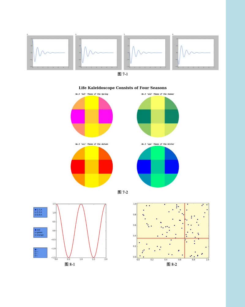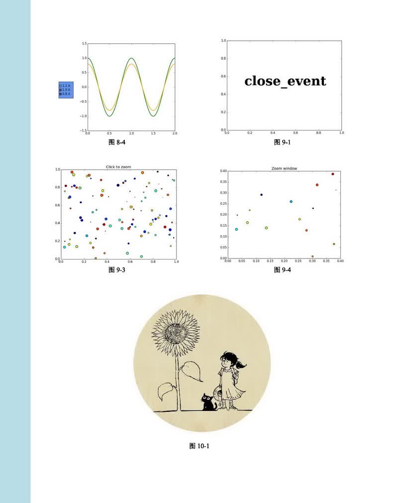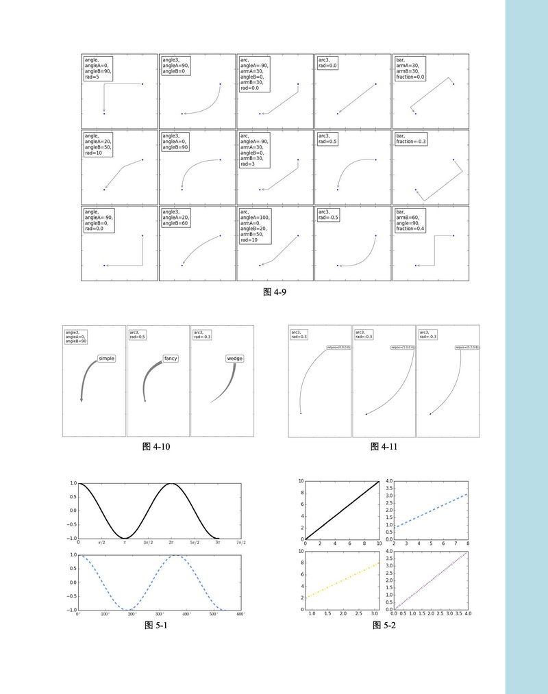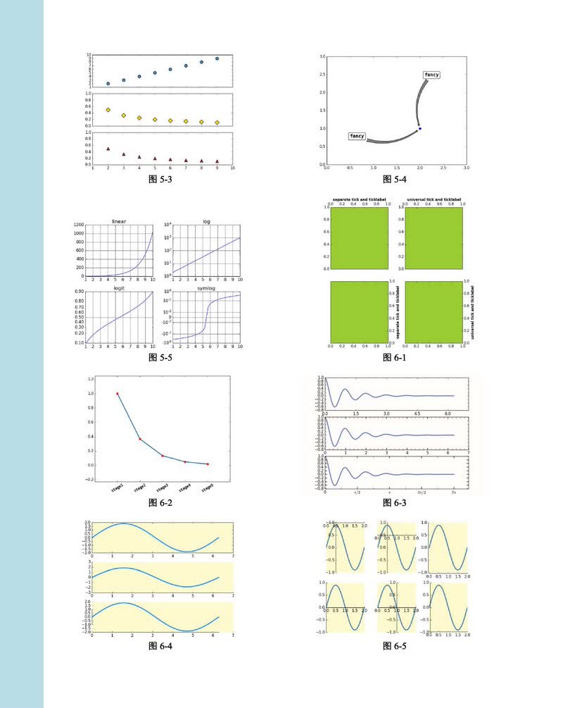 第5篇:拓展(第14、15章)。主要讲解使用LaTeX和matplotlib自带的TeX功能渲染文本内容的方法,以及使用matplotlib书写数学表达式的方法和技巧。