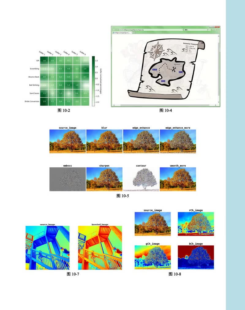 第4篇:探索(第10 ~ 13章)。主要讲解从外部导入图像加载到绘图区域的实现方法,绘制3D图形和地图的方法,以及结合前面章节介绍的应用方向,讲解综合交叉的应用场景。