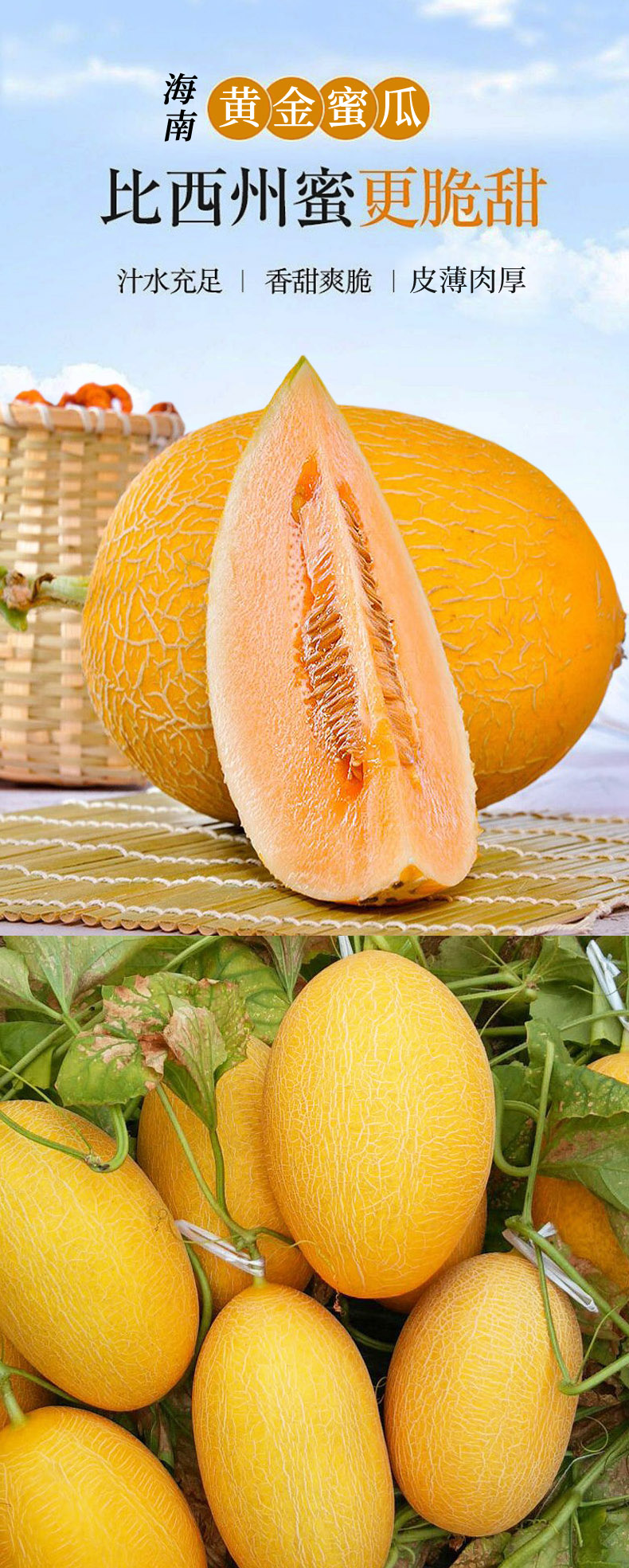 【产地直销 】海南黄金蜜瓜 爆甜多汁 鲜嫩无渣 净重3斤/5斤/9斤-GP