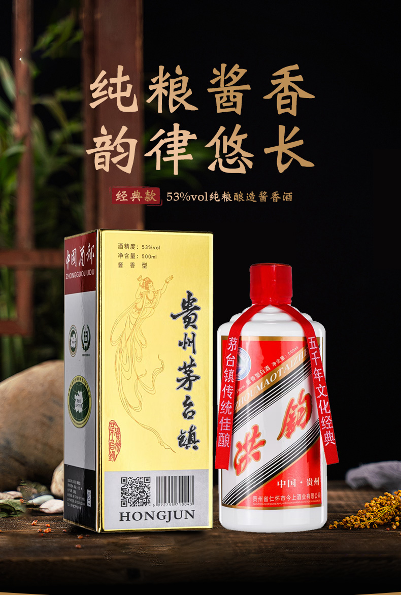 洪钧-奥悦经典款 窖藏经典大曲坤沙53度酱香型白酒卡盒实惠装 单瓶/箱装多规格
