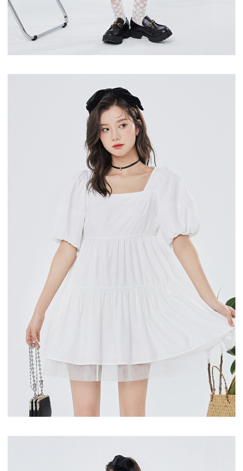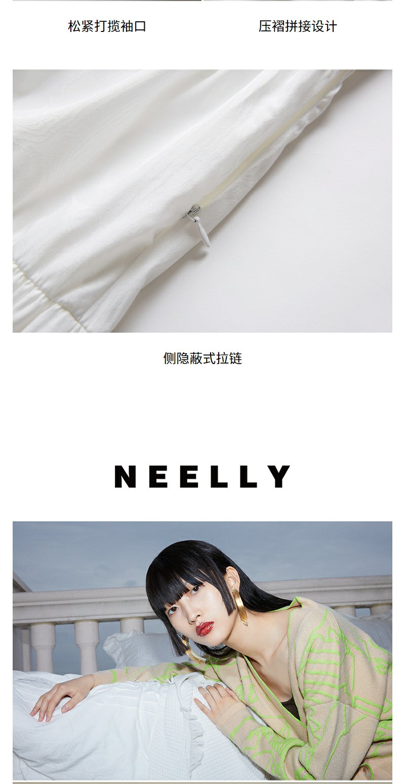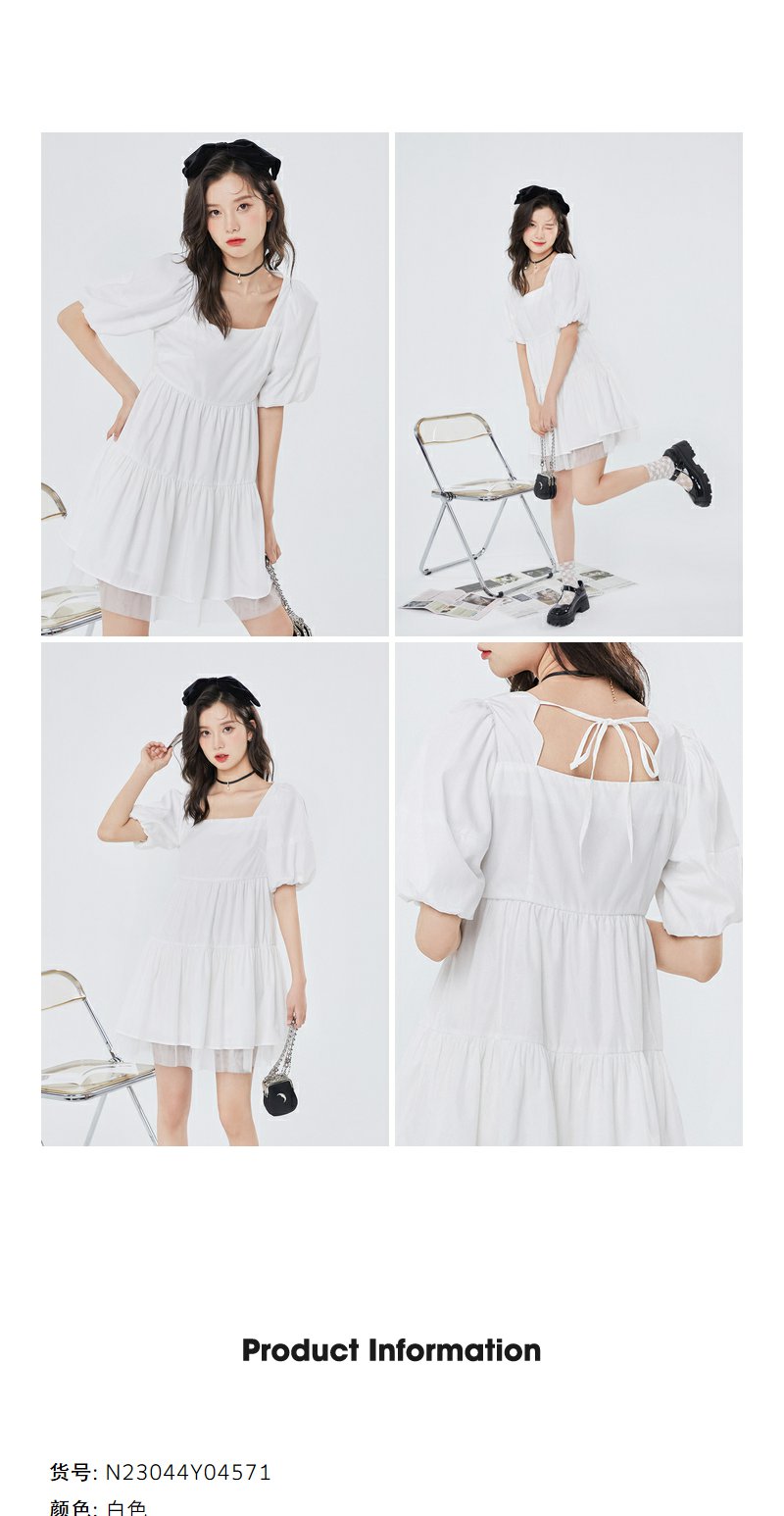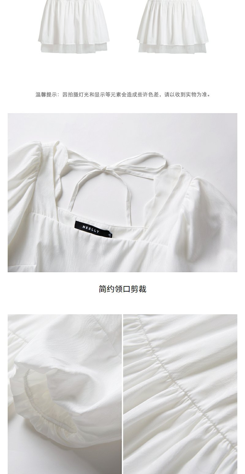 NEELLY纳俪气质方领连衣裙女泡泡袖甜美白色娃娃裙夏季大摆A字裙N23044Y04571
