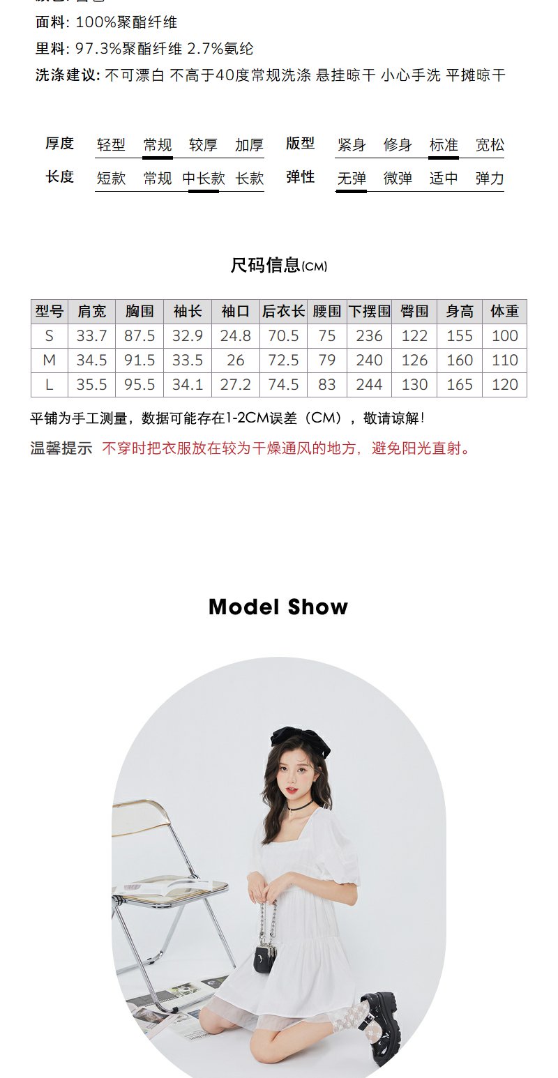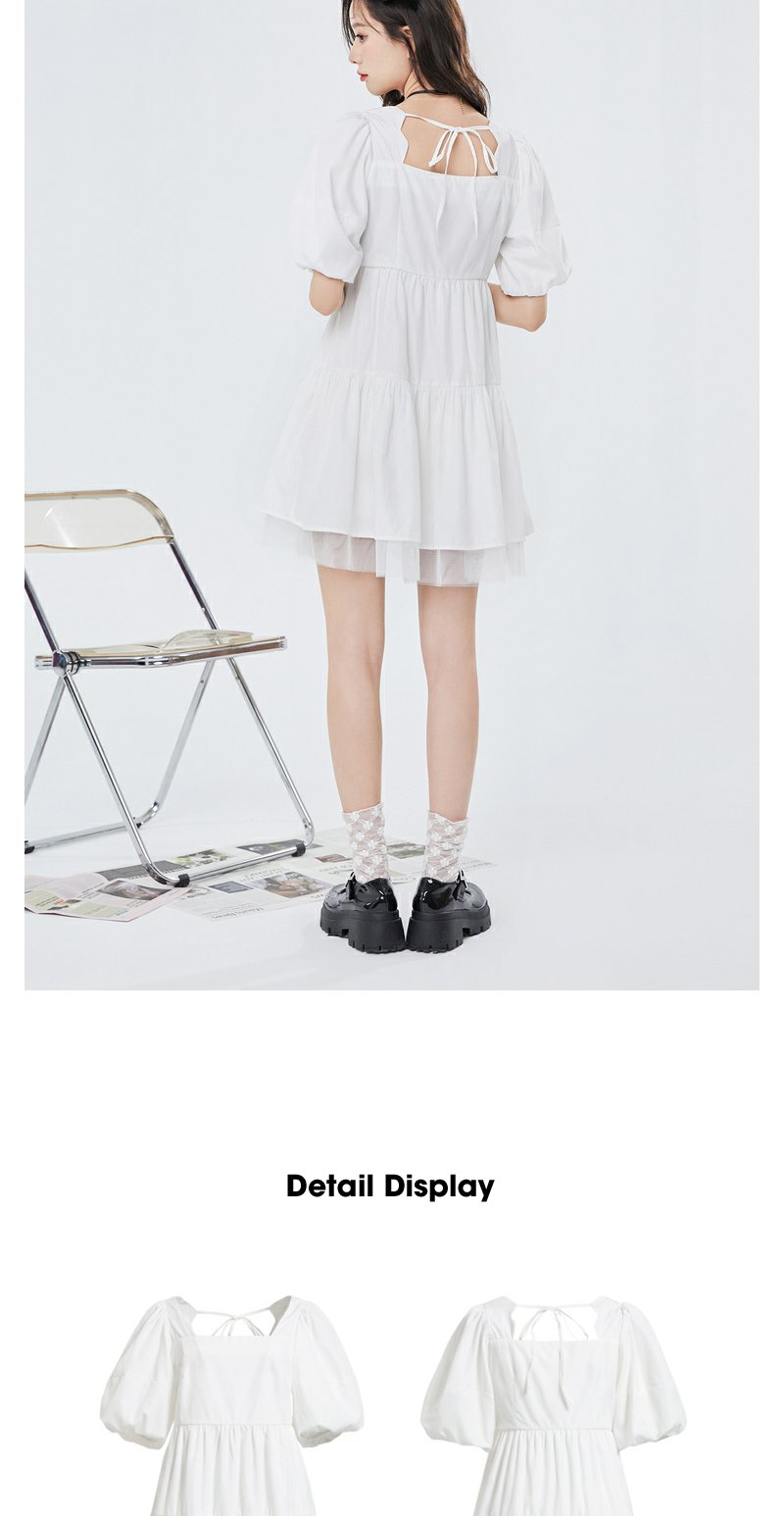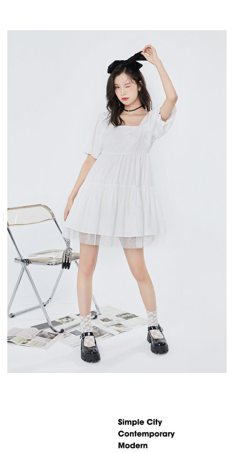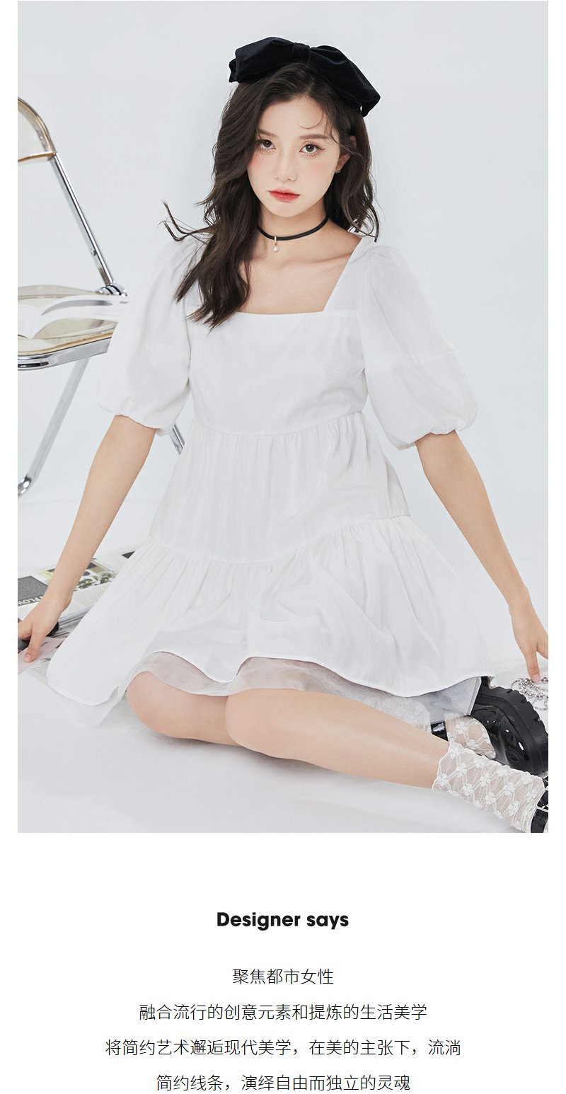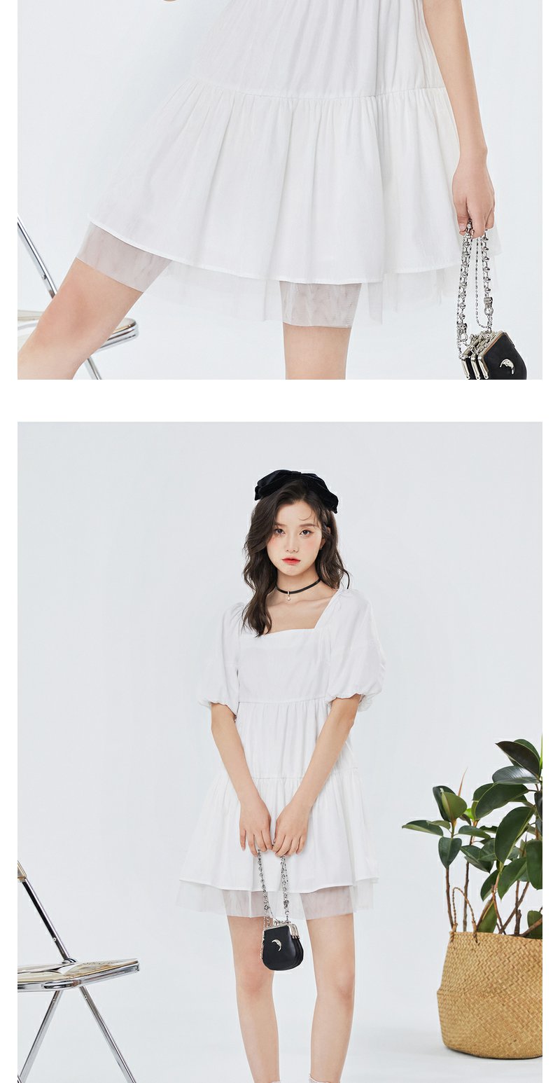NEELLY纳俪气质方领连衣裙女泡泡袖甜美白色娃娃裙夏季大摆A字裙N23044Y04571