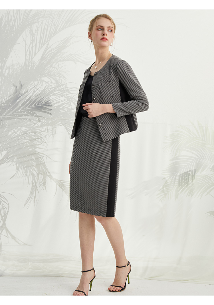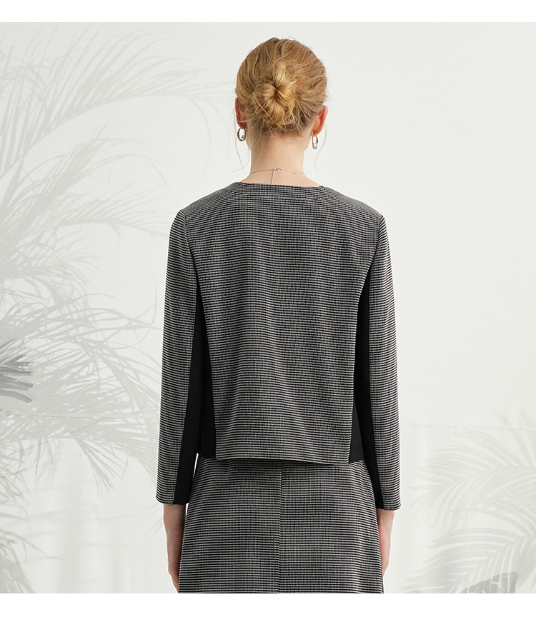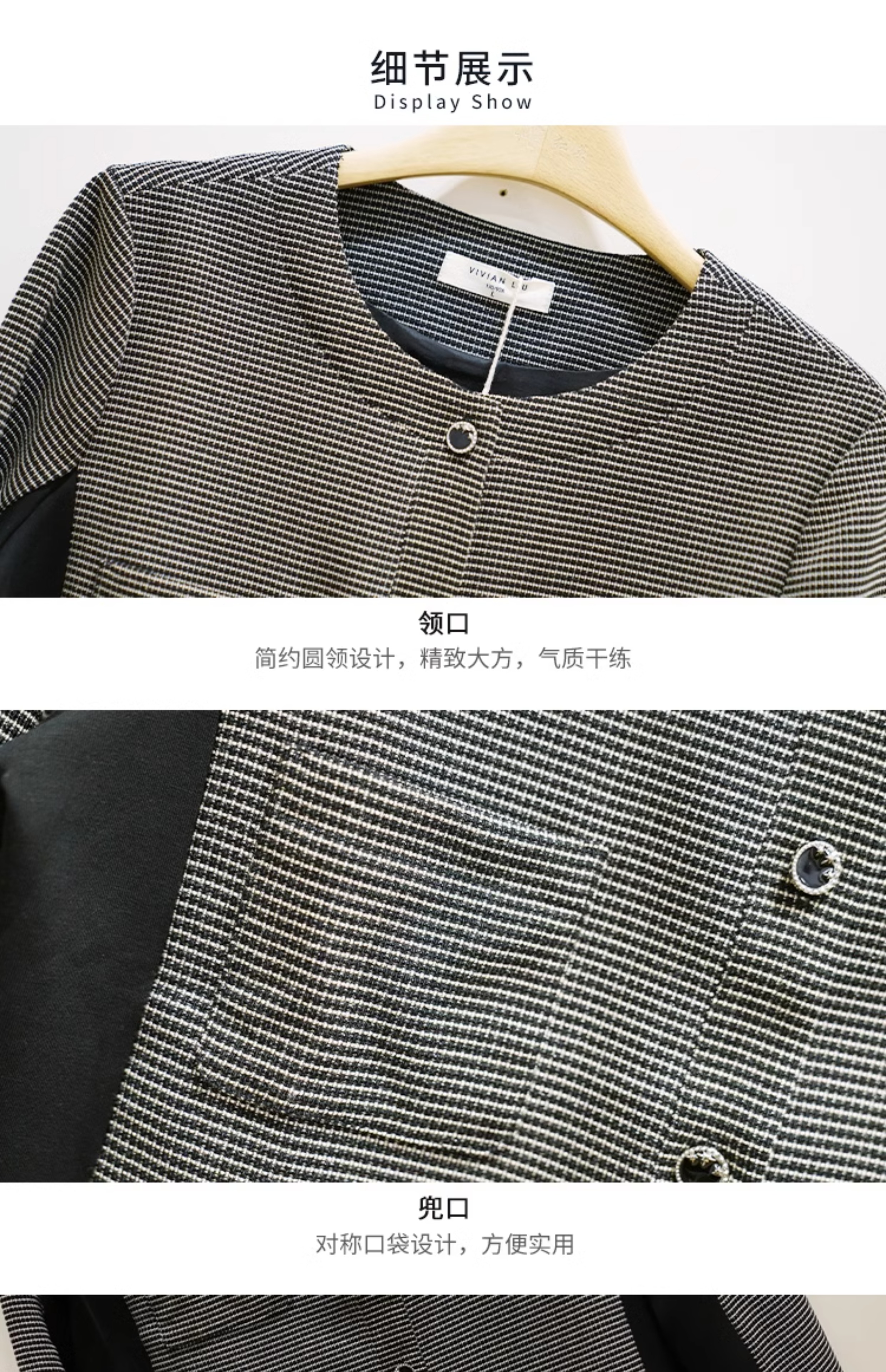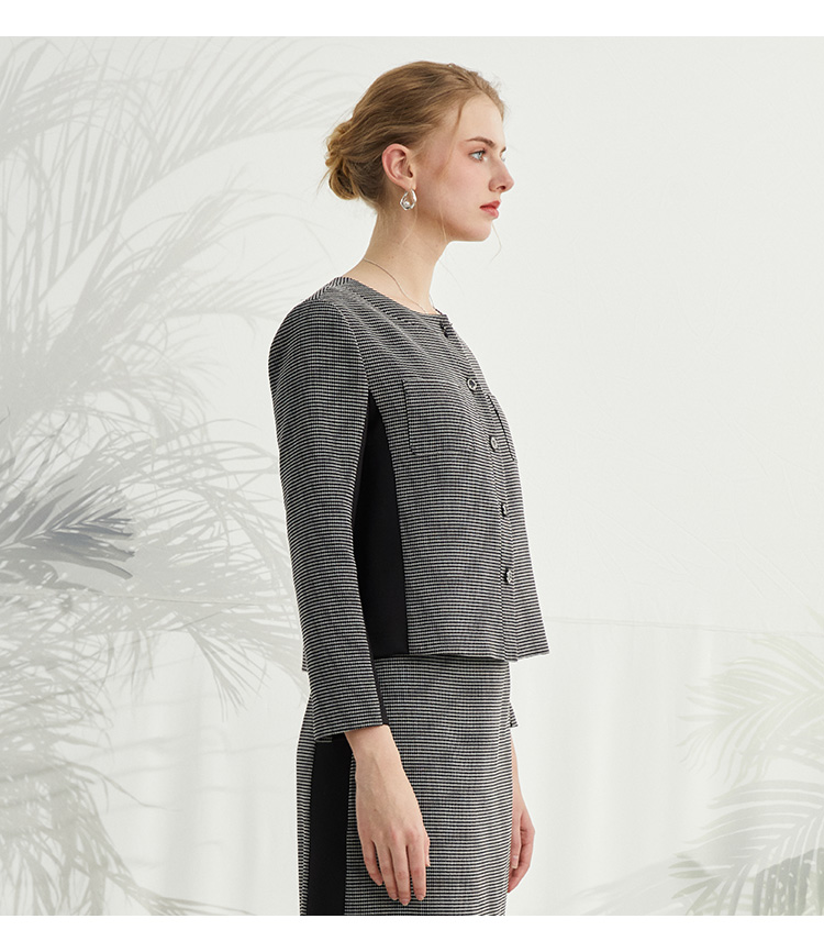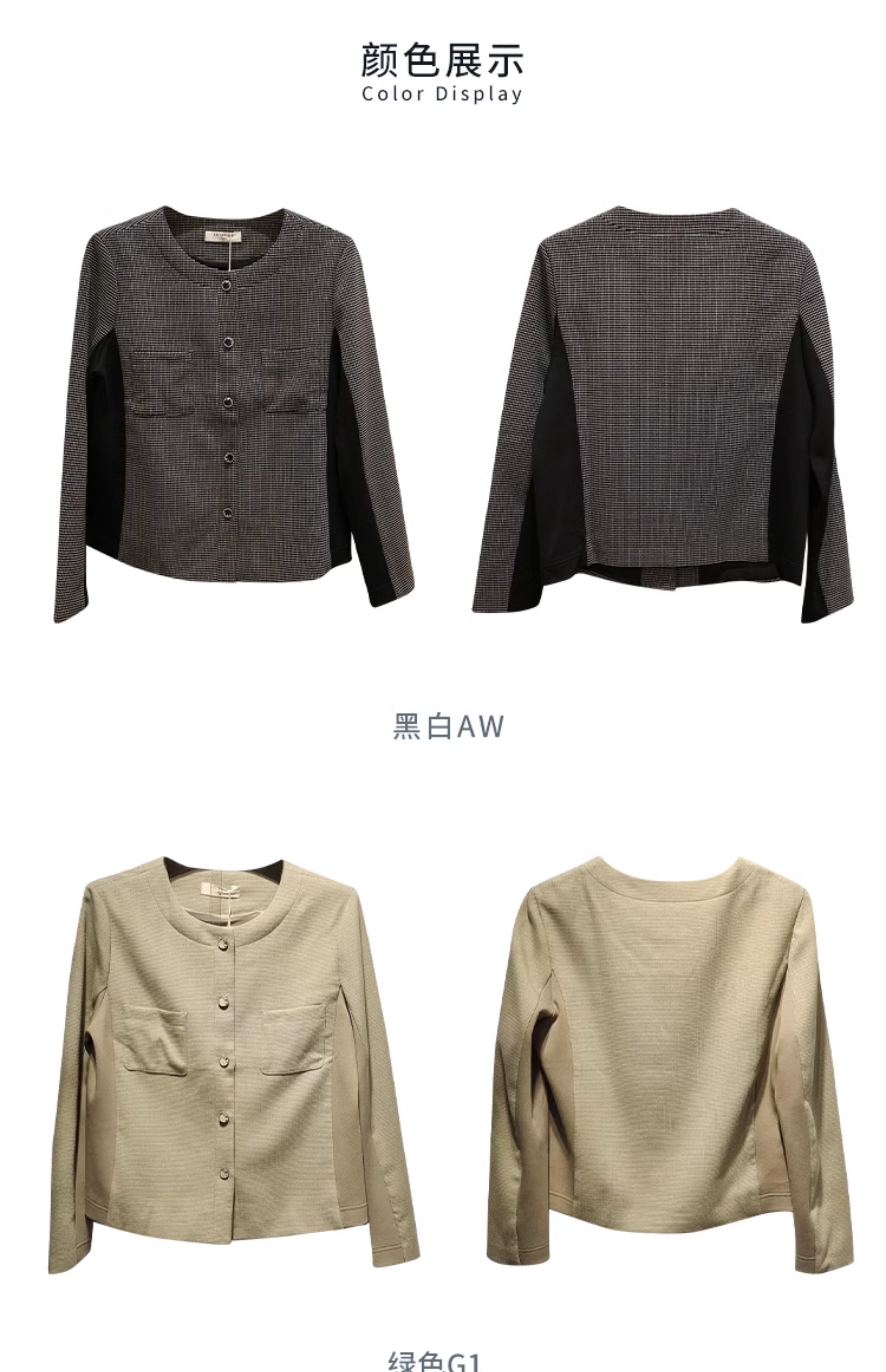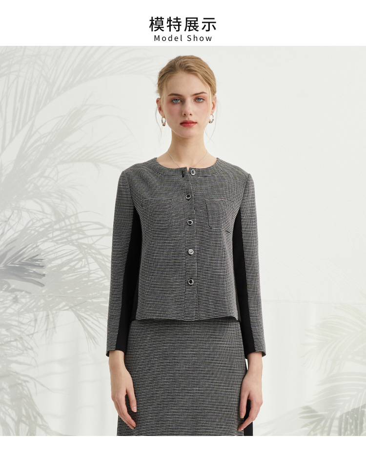 VIVIAN LIU薇薇安刘R2413101梅春女装新款圆领单排扣拼色长袖上衣