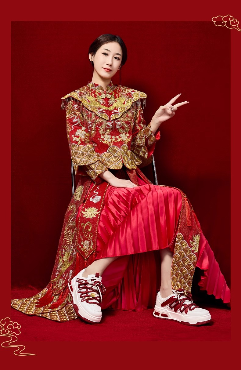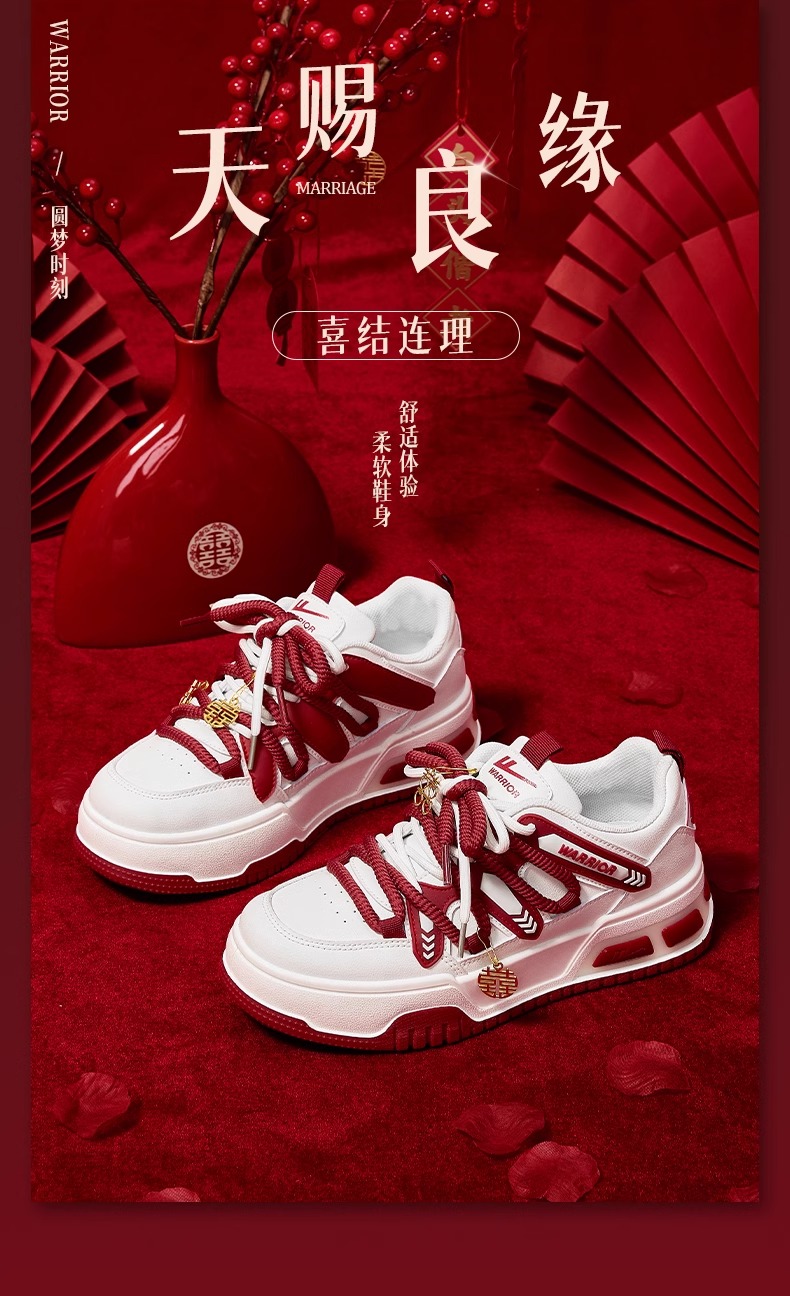 回力婚鞋2024新款红色配秀禾服女鞋新娘结婚情侣板鞋休闲鞋子女款