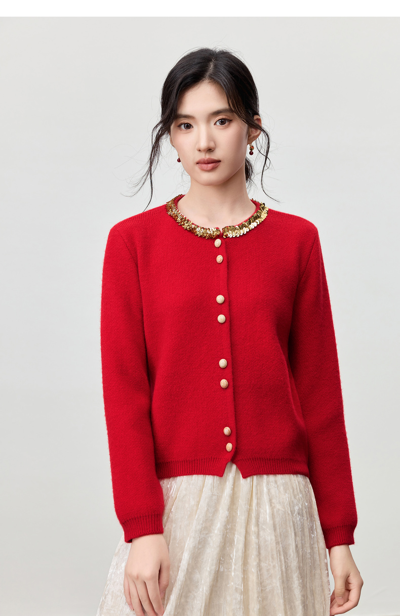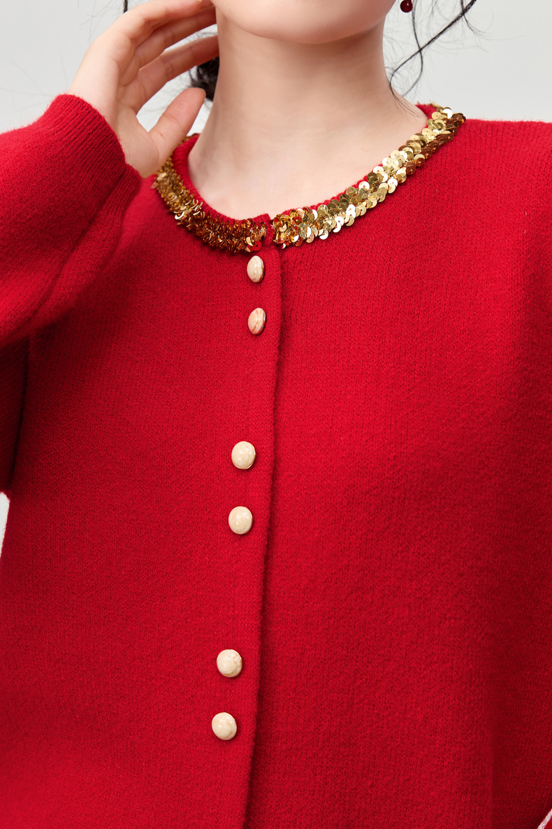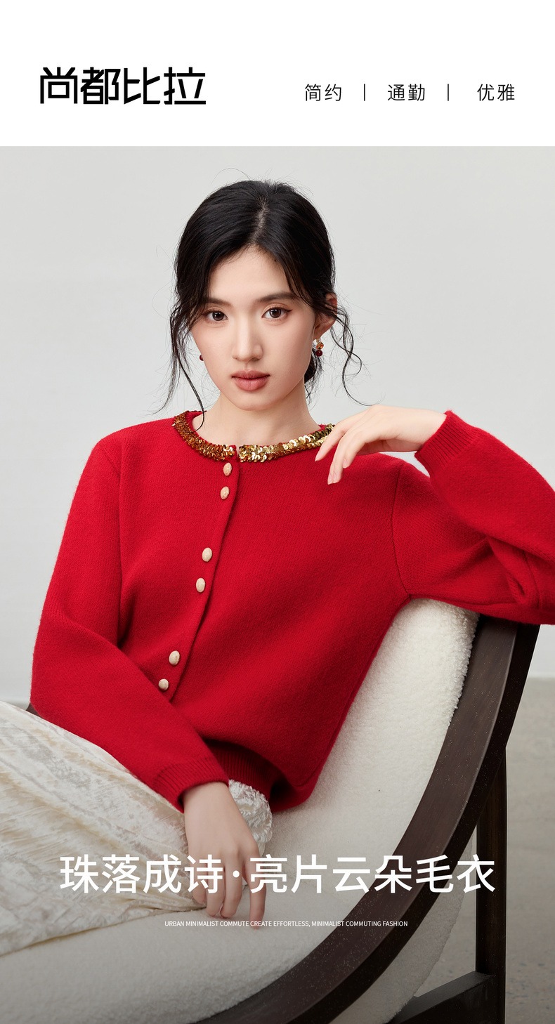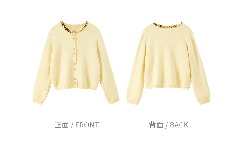 【内购】【璀璨亮片】多巴胺优雅通勤圆领双粒扣落肩袖软糯超弹厚开衫毛衣-W54EB3954