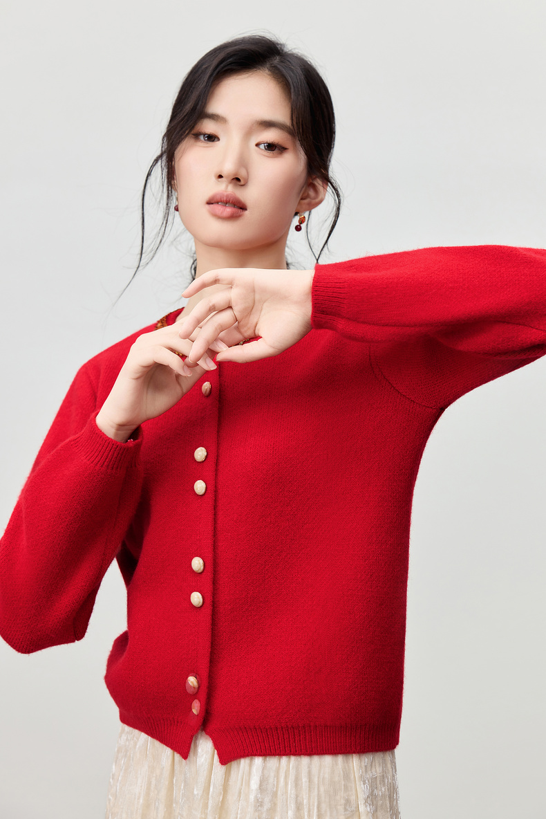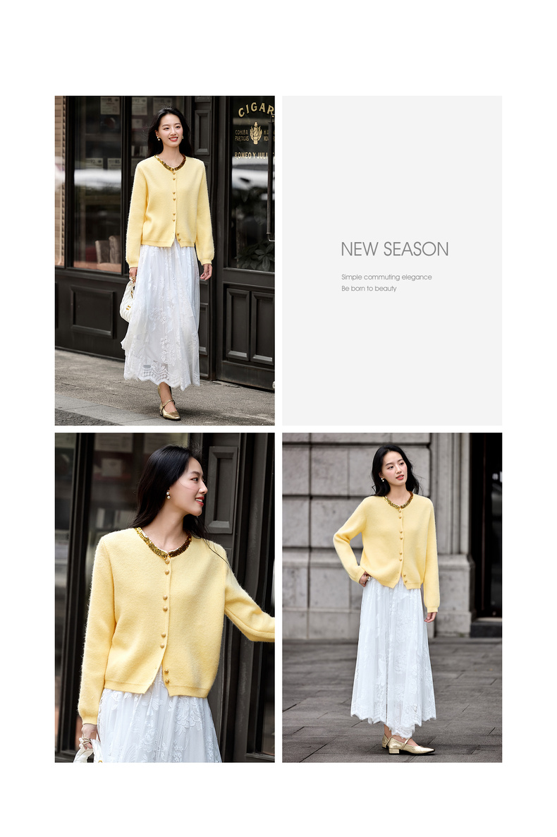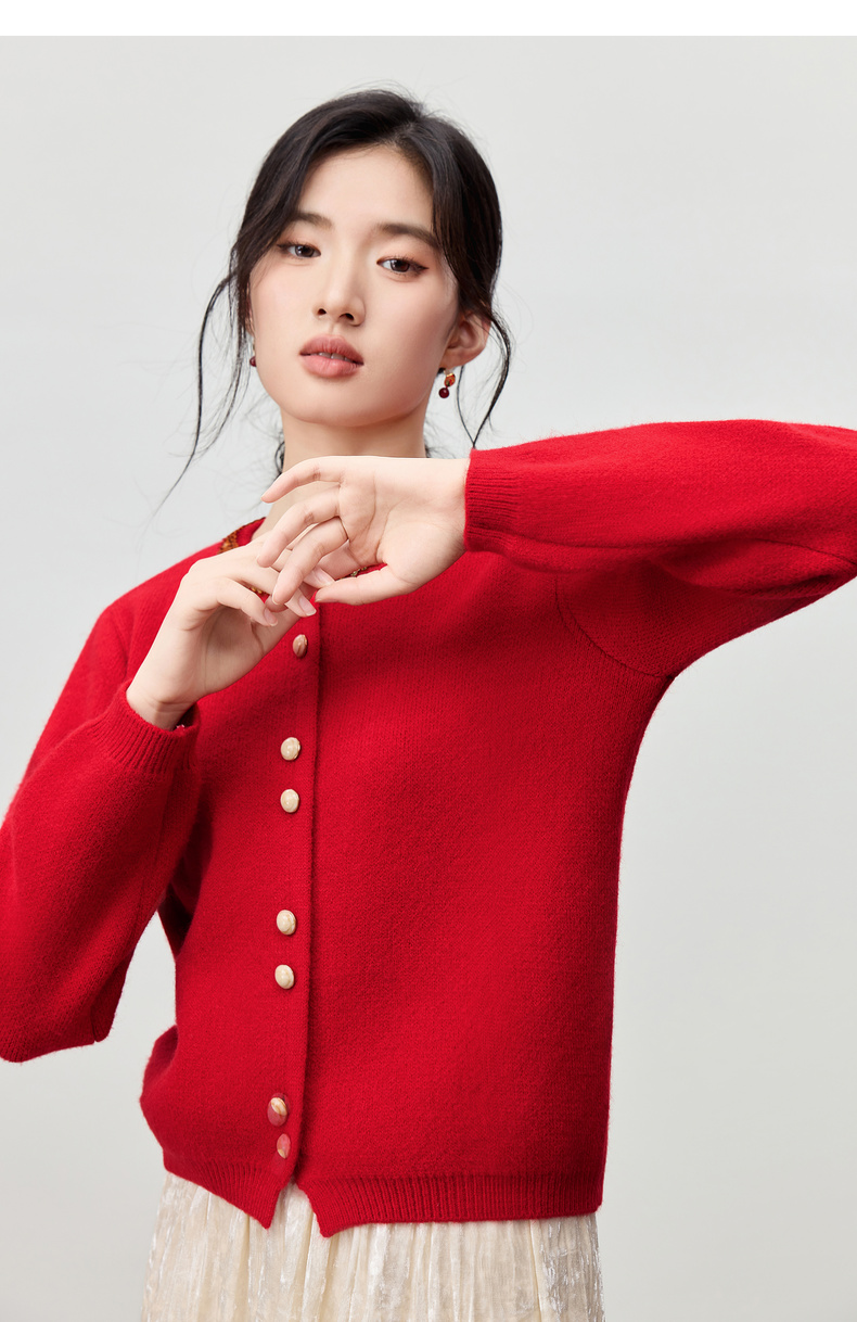 【内购】【璀璨亮片】多巴胺优雅通勤圆领双粒扣落肩袖软糯超弹厚开衫毛衣-W54EB3954
