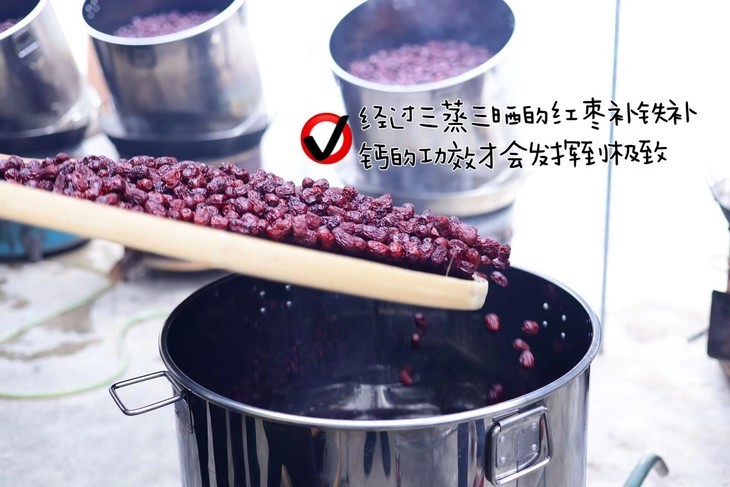 枣的三蒸三晒做法,来自于的“炮制学”。枣蒸过之后颜色变得不一样了,口感也变了。