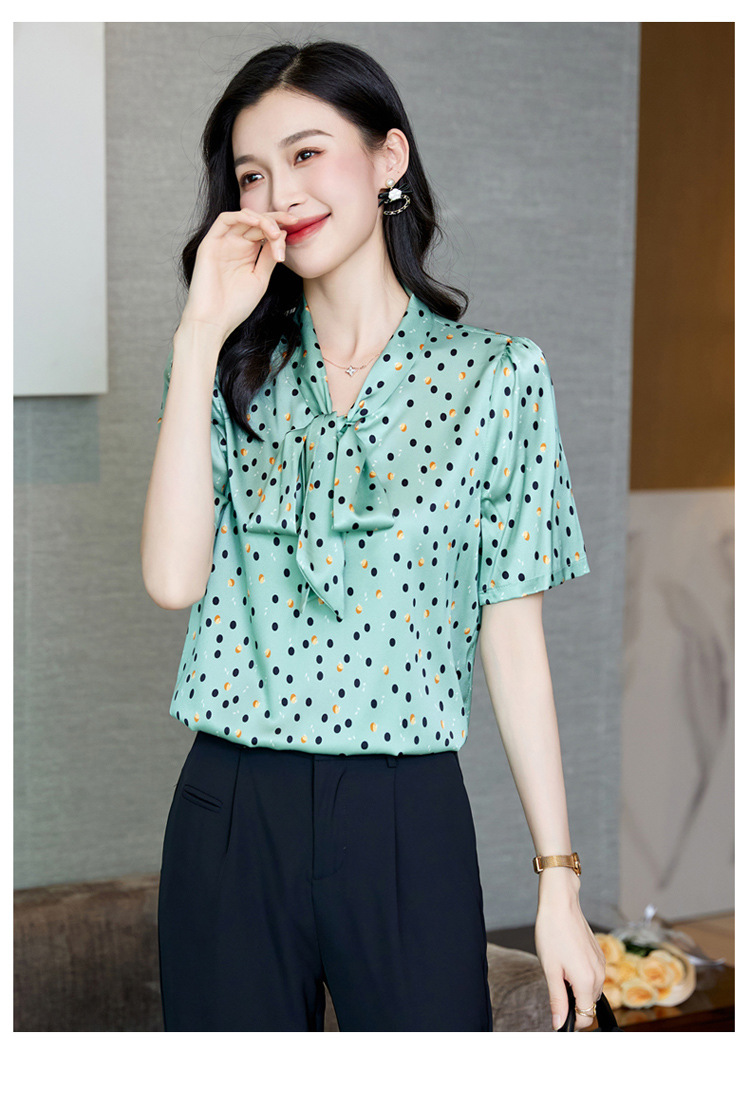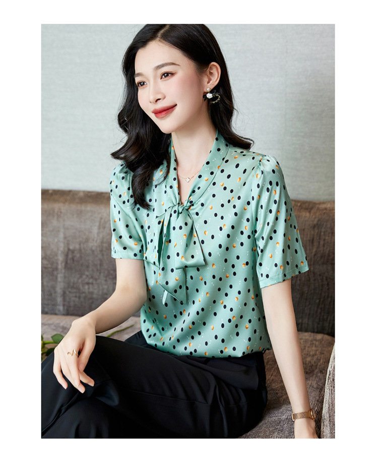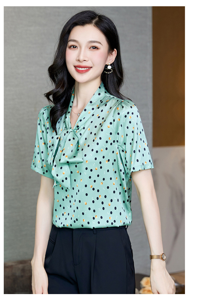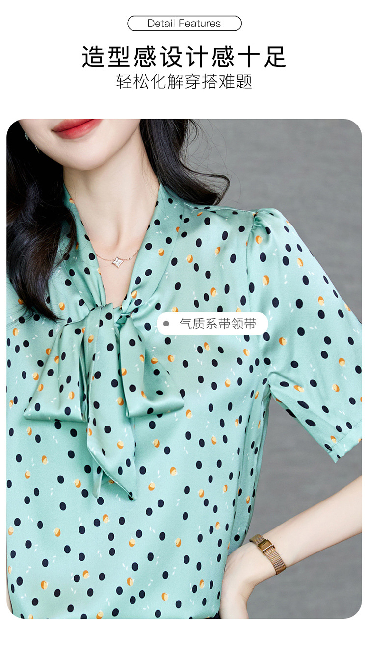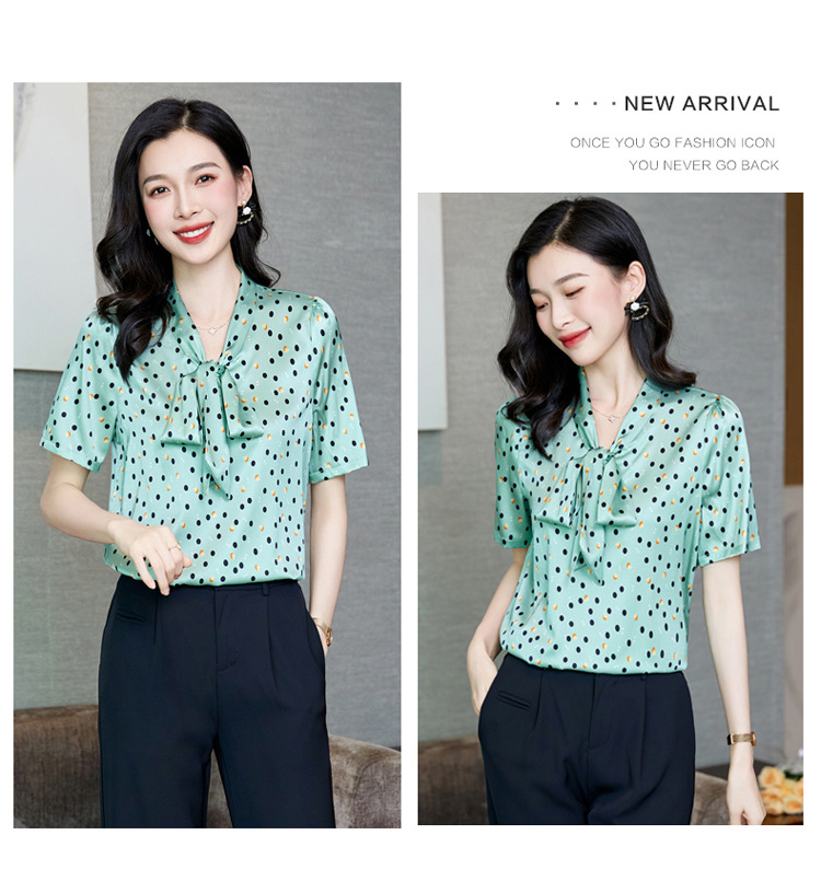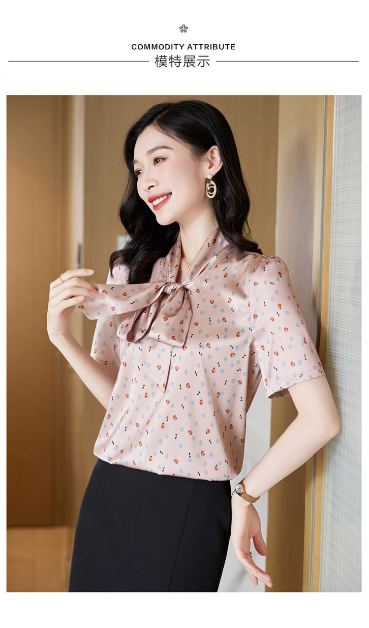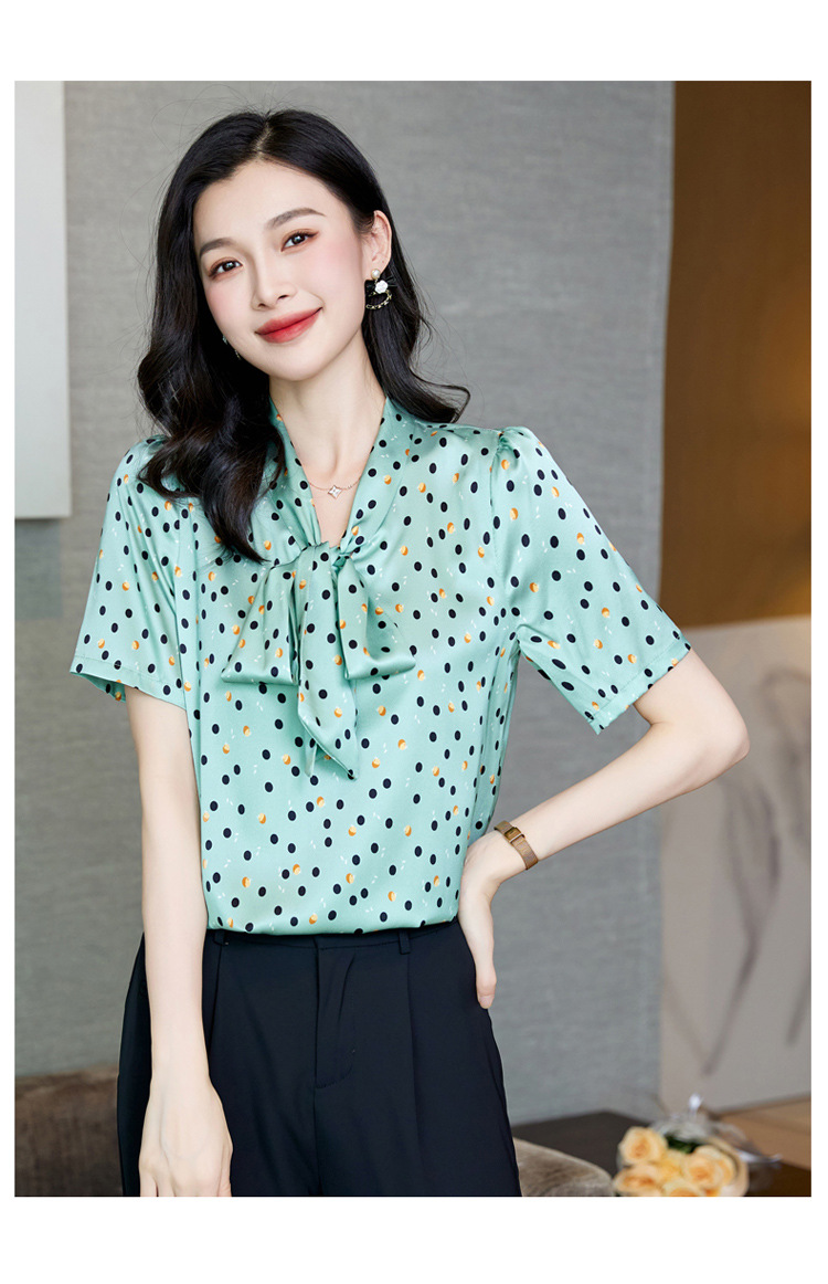 真丝短袖衬衫2023新款印花蝴蝶结飘带洋气桑蚕丝小衫上衣LS-3602