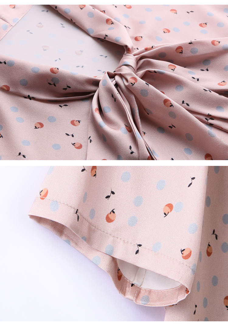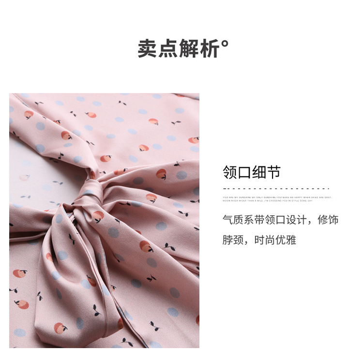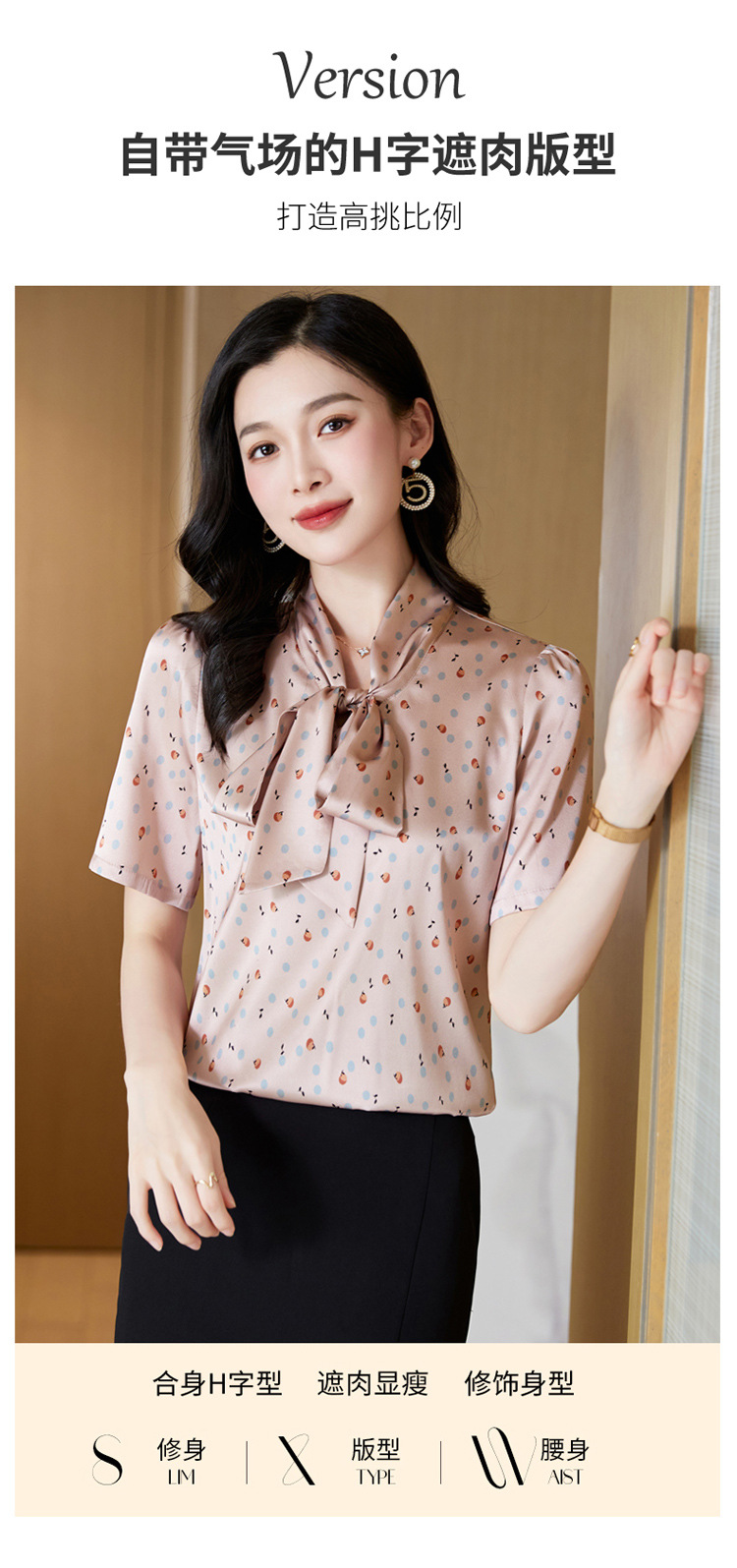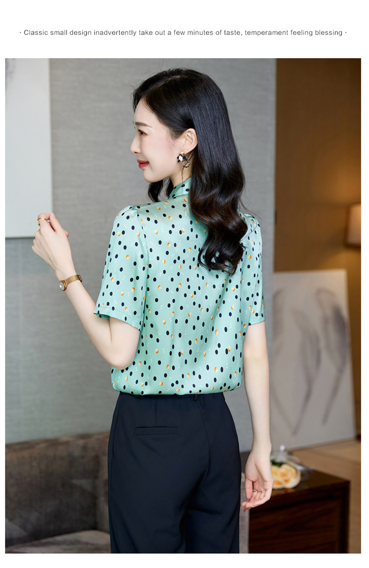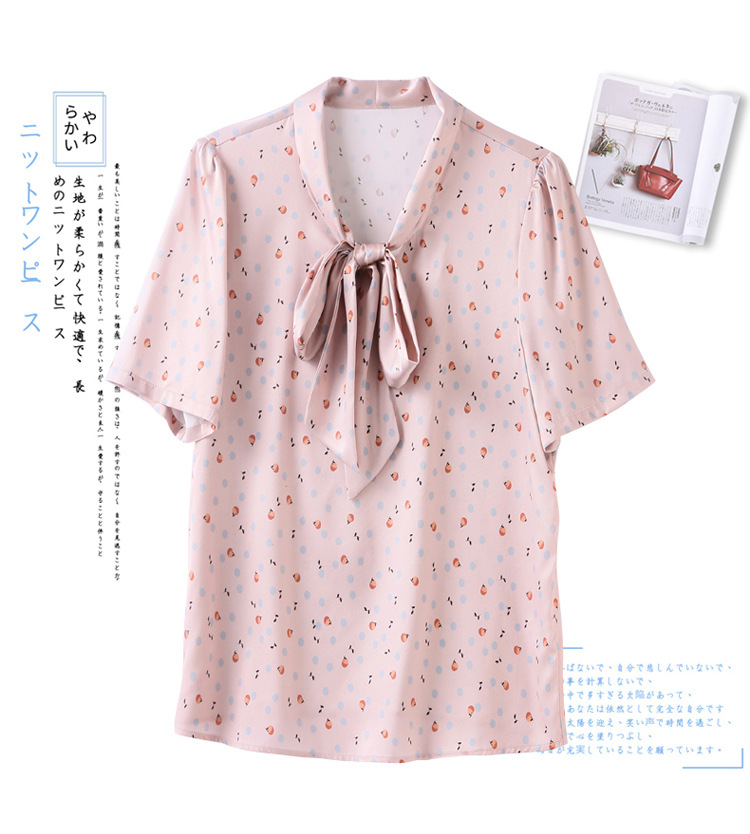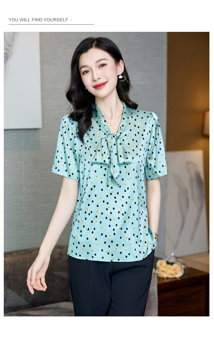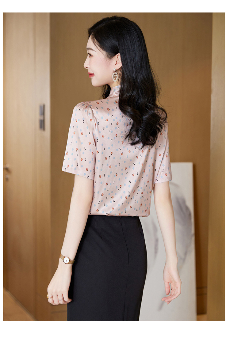 真丝短袖衬衫2023新款印花蝴蝶结飘带洋气桑蚕丝小衫上衣LS-3602