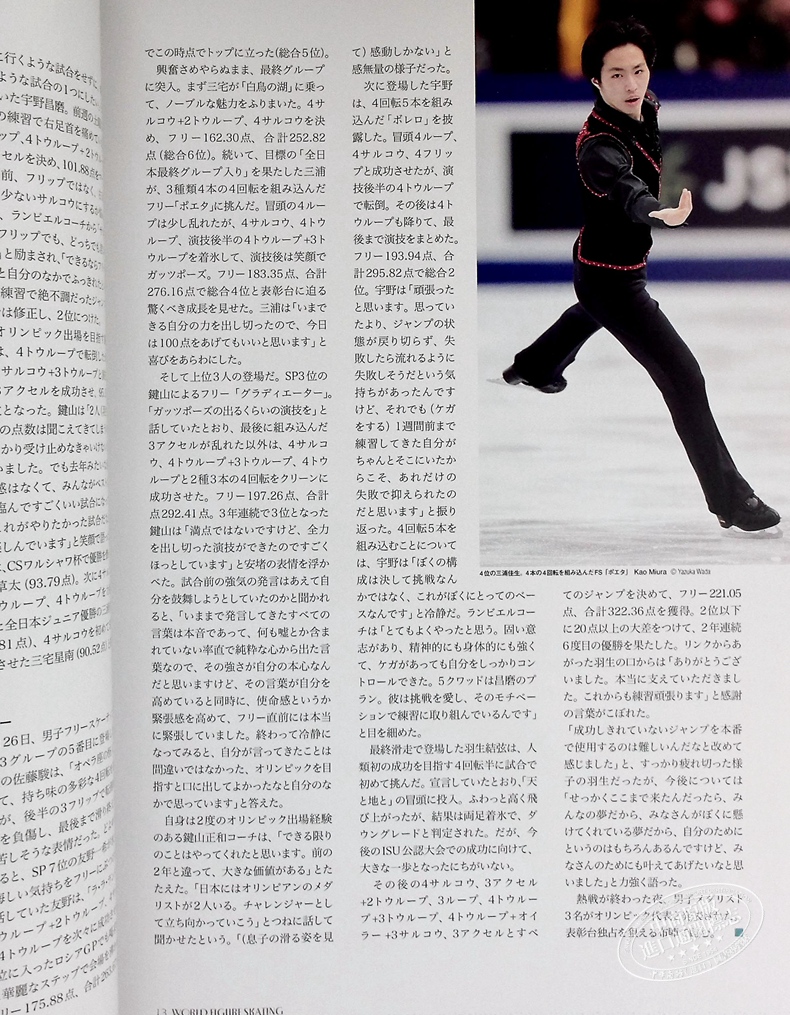 以作为奥运代表最终选拔赛的全日本选手权为中心,报道受瞩目的俄罗斯选手权和全美选手权的北京奥运展望号。
