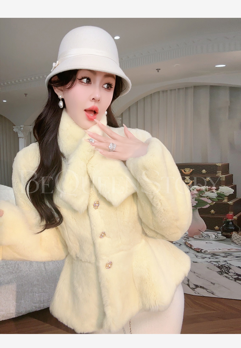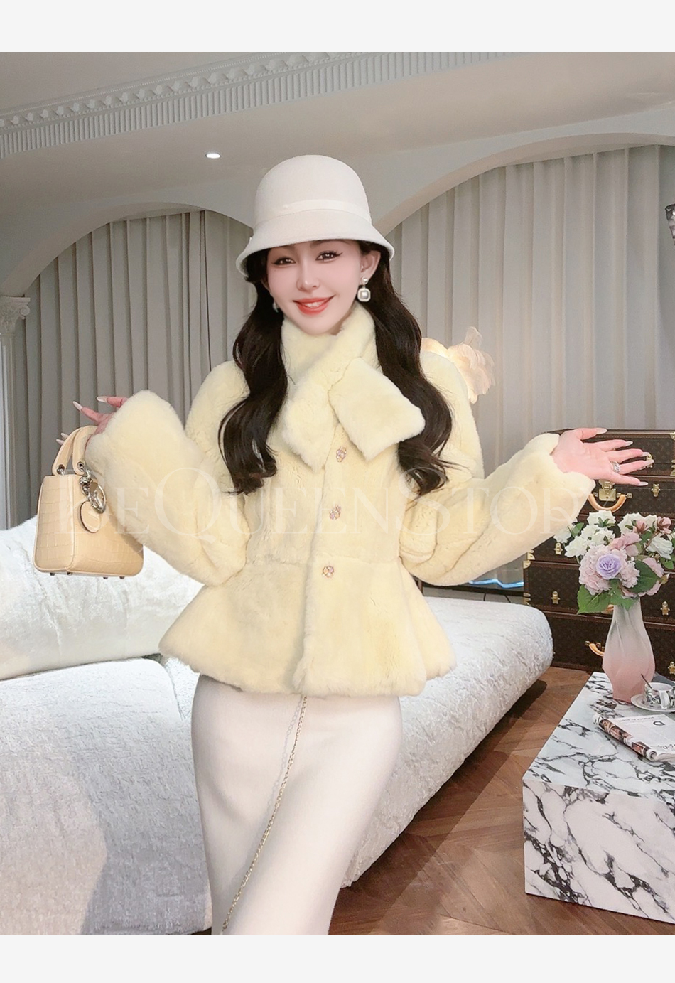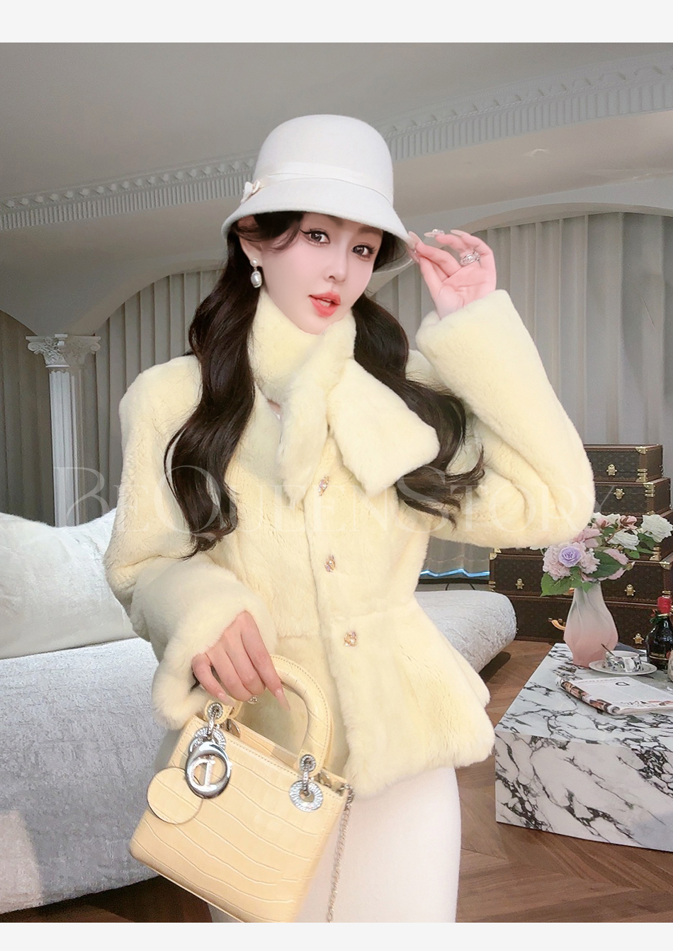 【孤品样衣,不退不换】【神明少女】高级V领收腰100獭兔毛皮皮草外套红人上新