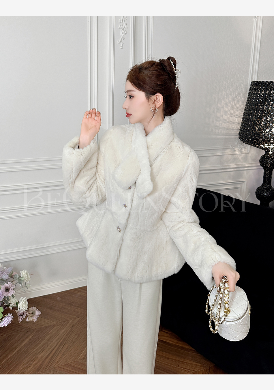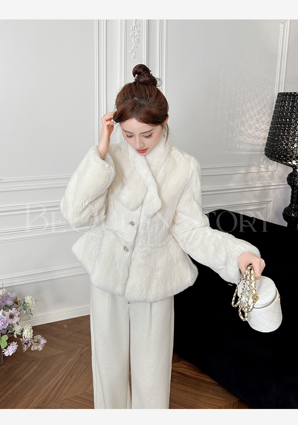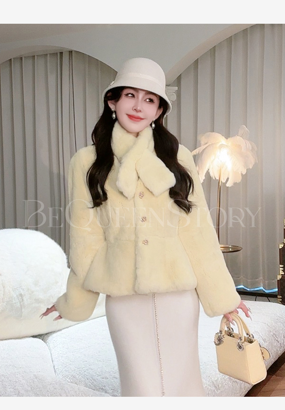 【孤品样衣,不退不换】【神明少女】高级V领收腰100獭兔毛皮皮草外套红人上新