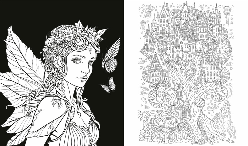 在这本充满浪漫奇幻色彩的涂色书中,为墨与星光交织的世界增添色彩。