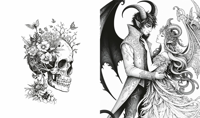 一本令人惊艳的涂色书,充满了以BookTok经典浪漫奇幻元素为灵感的艺术作品。