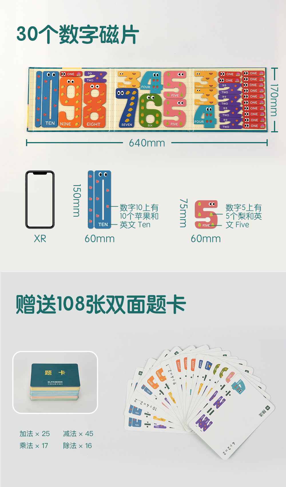实实在在的清仓款,之前开团卖价59元一套,现在仅存2000套,清仓处理39元一套。包含30个数字磁片,赠送108张双面题卡