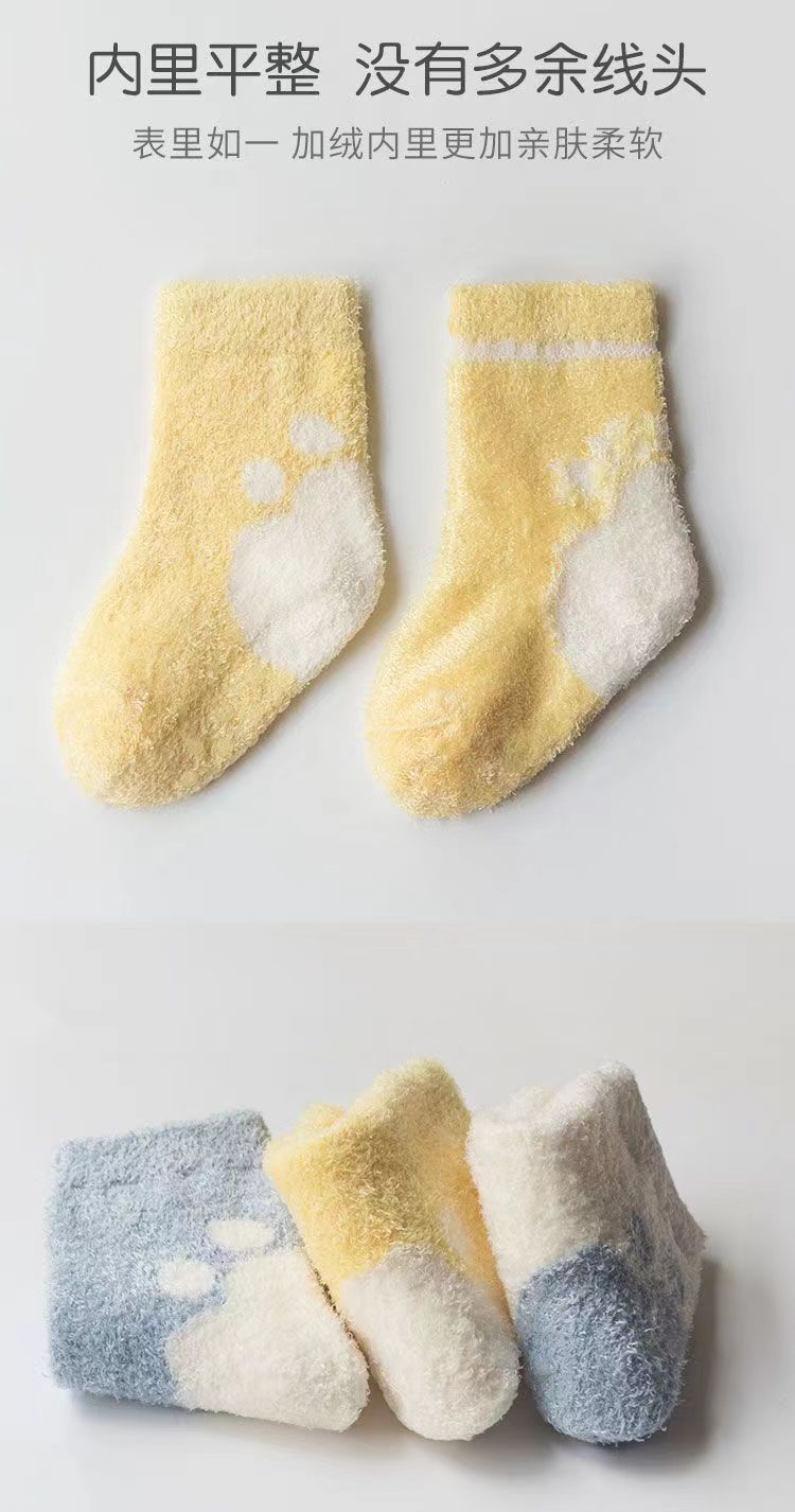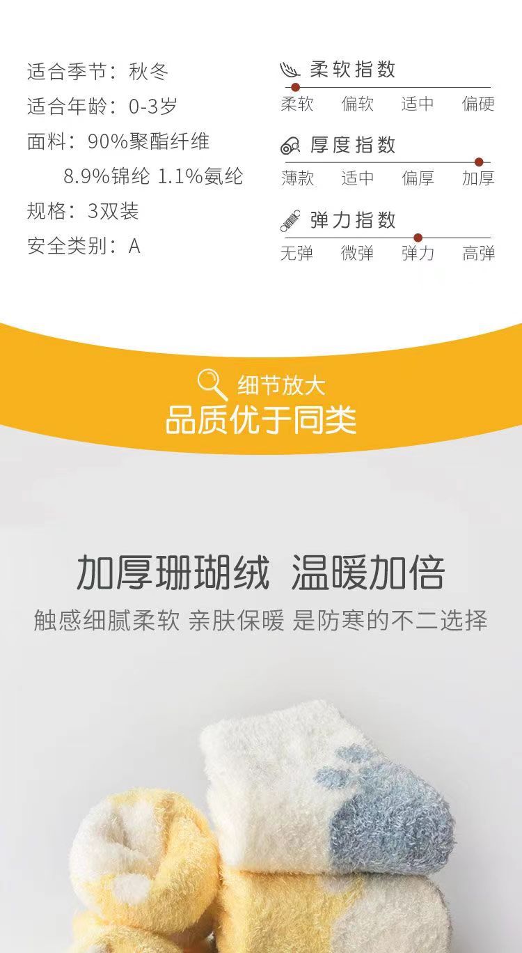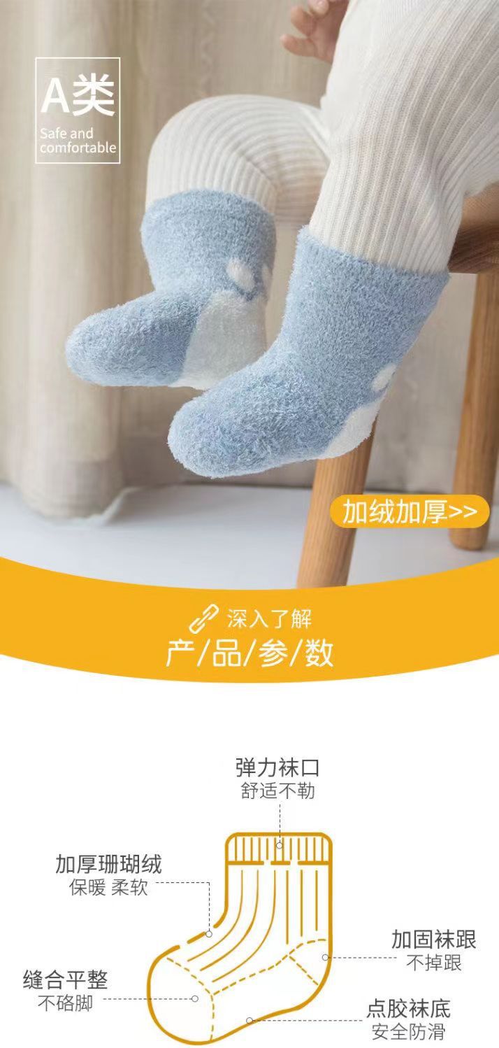 秒杀三双装【加绒加厚!防寒保暖】A类冬季加厚婴幼儿袜子0-1-3岁男女童保暖袜冬天蓄热宝宝儿童中筒袜。rc
