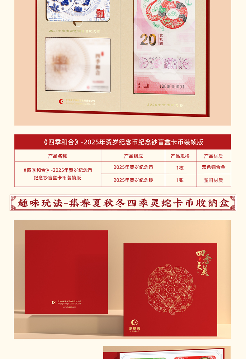 【康银阁发行】四季和合·2025蛇年纪念币纪念钞·春夏秋冬套装