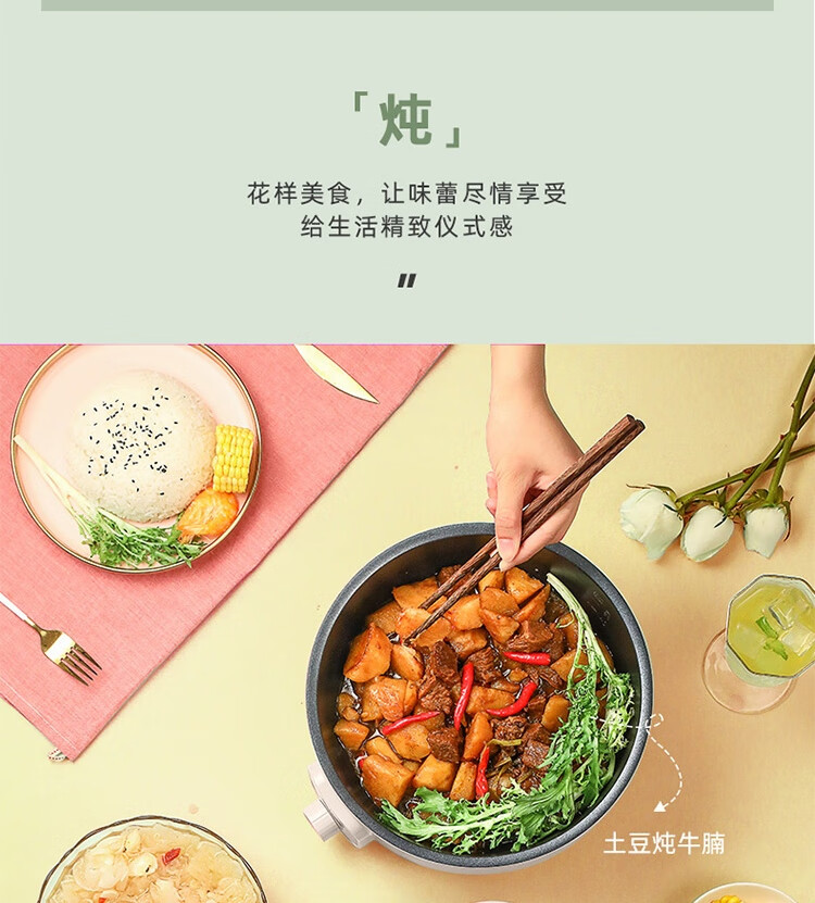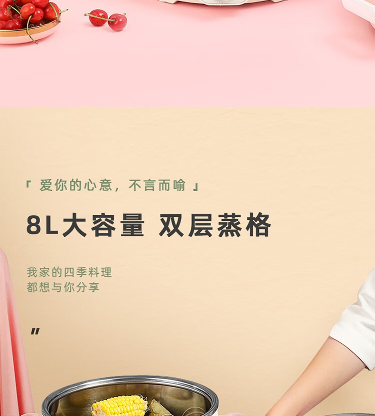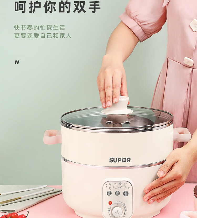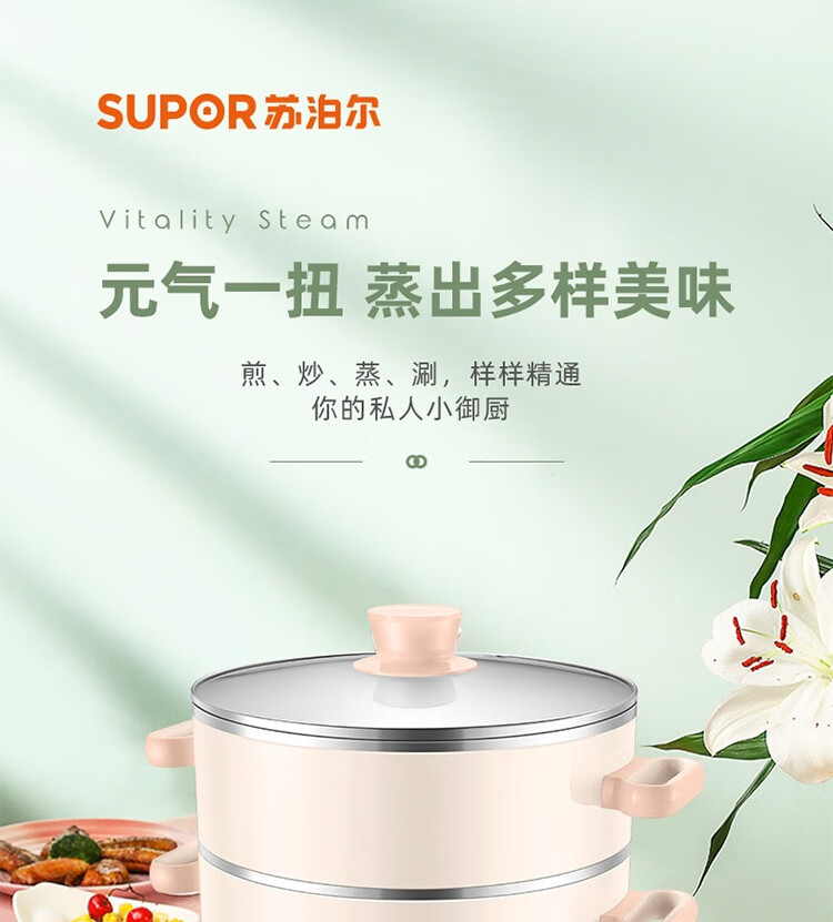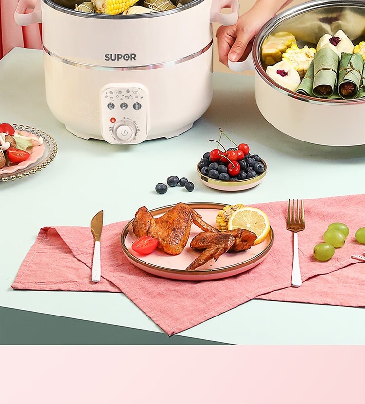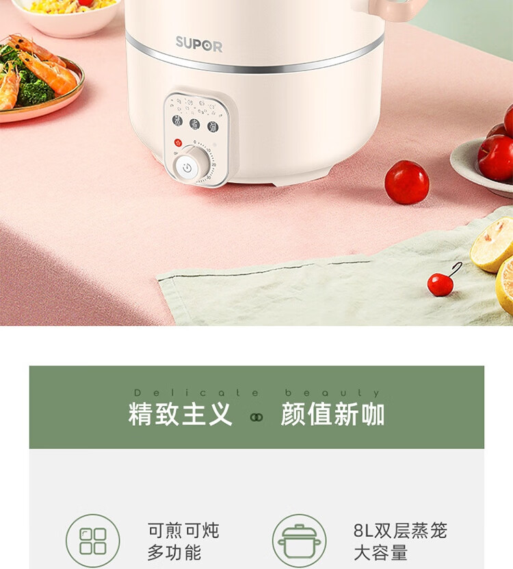 苏泊尔(SUPOR)电蒸锅电煮锅多用途锅多功能家用电火锅 8L大容量不沾锅蒸煮涮多功能锅ZN26YK18
