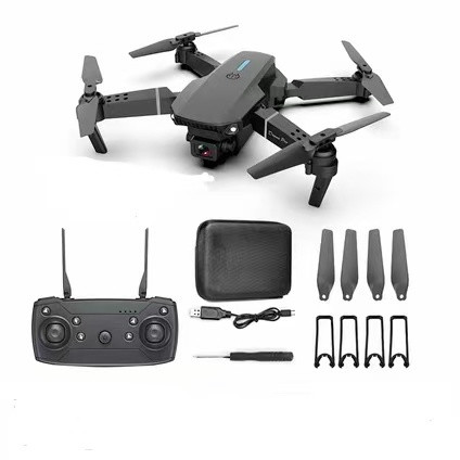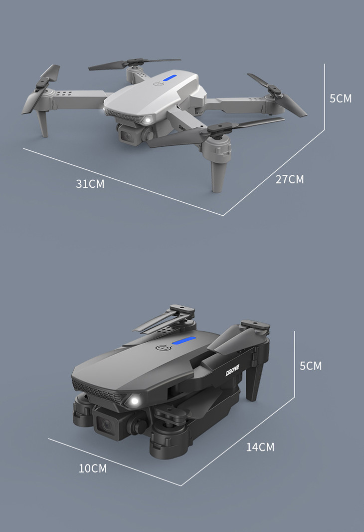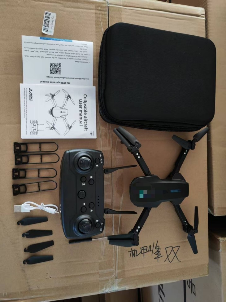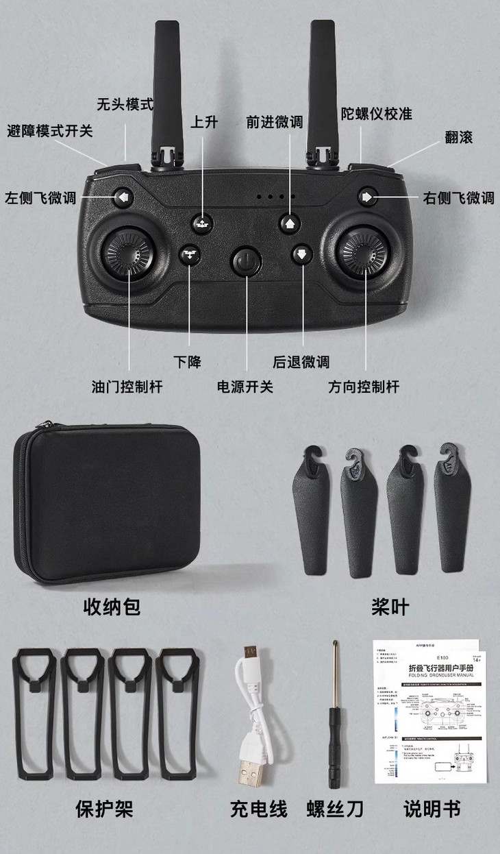 全新升级四轴无人机折叠高清航拍,非常适合新手练习,锻练手感,大人小孩都可以操作,便宜、 好玩、耐摔、抗风稳定、拍摄非常清晰、外出旅行携带方便、 玩法动作功能多样。 【产品功能介绍】 输入电压:DC4.7-5.3v 适配器电流:0.5-2A 飞行时间:10分钟左右; 遥控器:安装三节5号电池 30万单摄像头,护架保护功能,电子增稳技术,支持手机app,同时边观看边操纵方向现场直播,无头模式,360度空中特技,实时图传,重力感应,LED灯光,手机控制。 【产品配件】 机身*1、遥控器*1、保护架*4、螺丝刀*1、USB充电线*1、原厂 电池*1、备用机翼*2、说明书*1