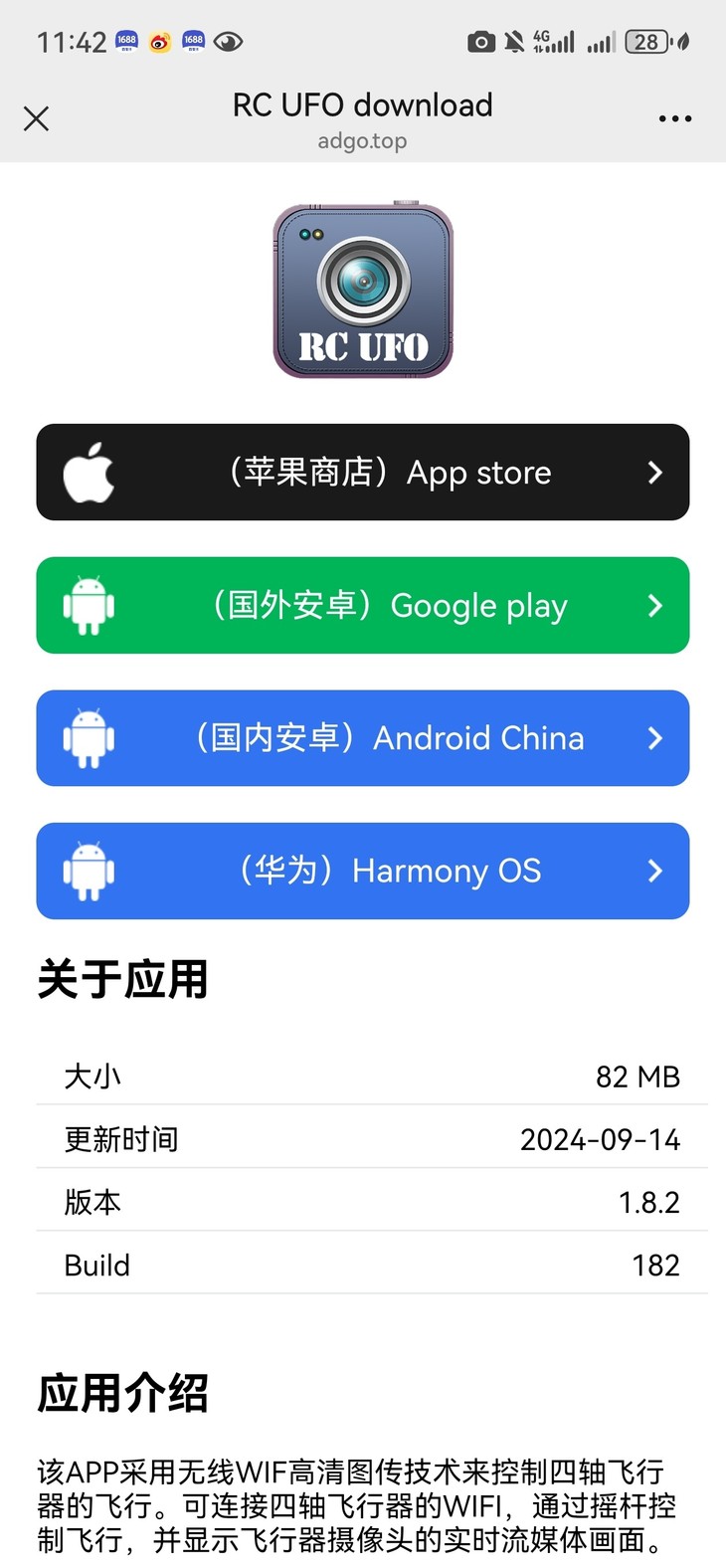 在手机应用市场搜索“RC UFO”APP 下载安装即可连接飞行器哦~