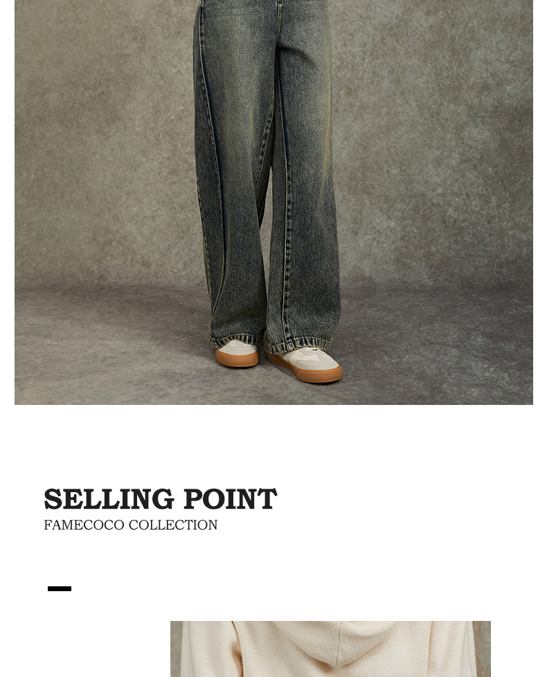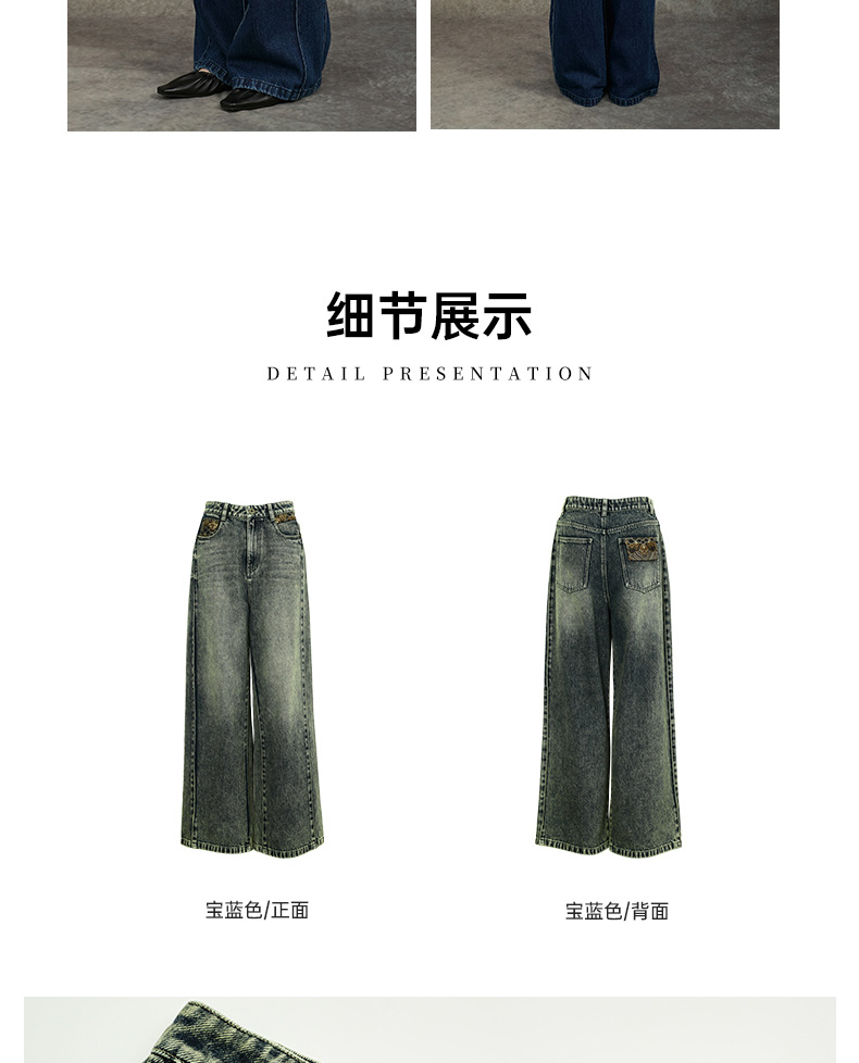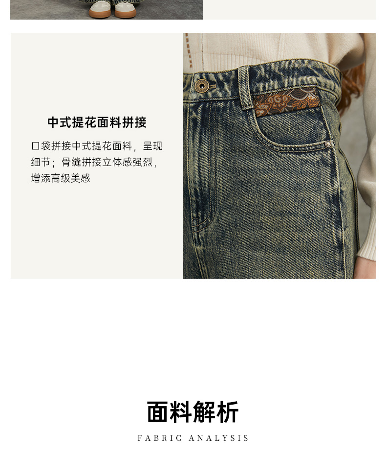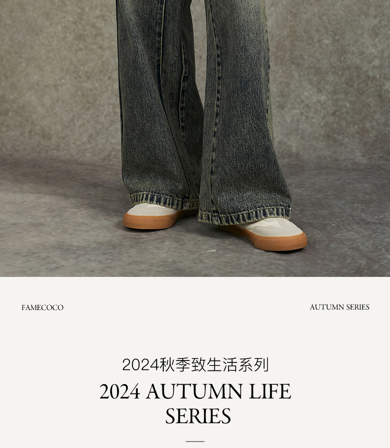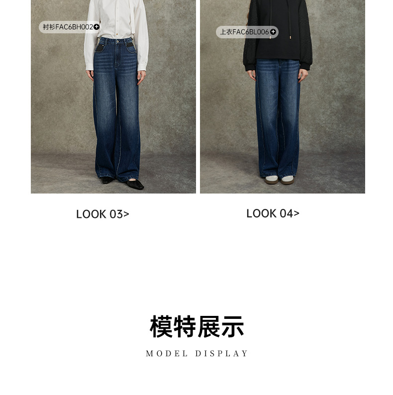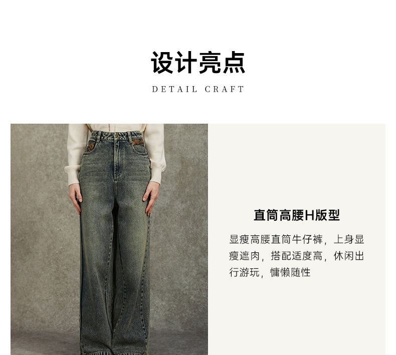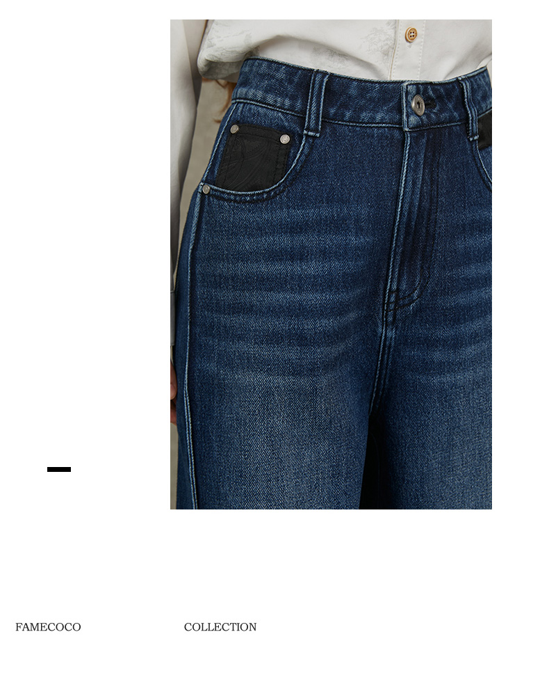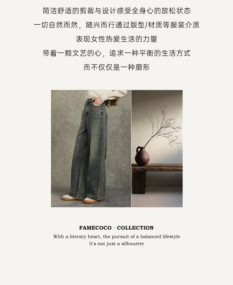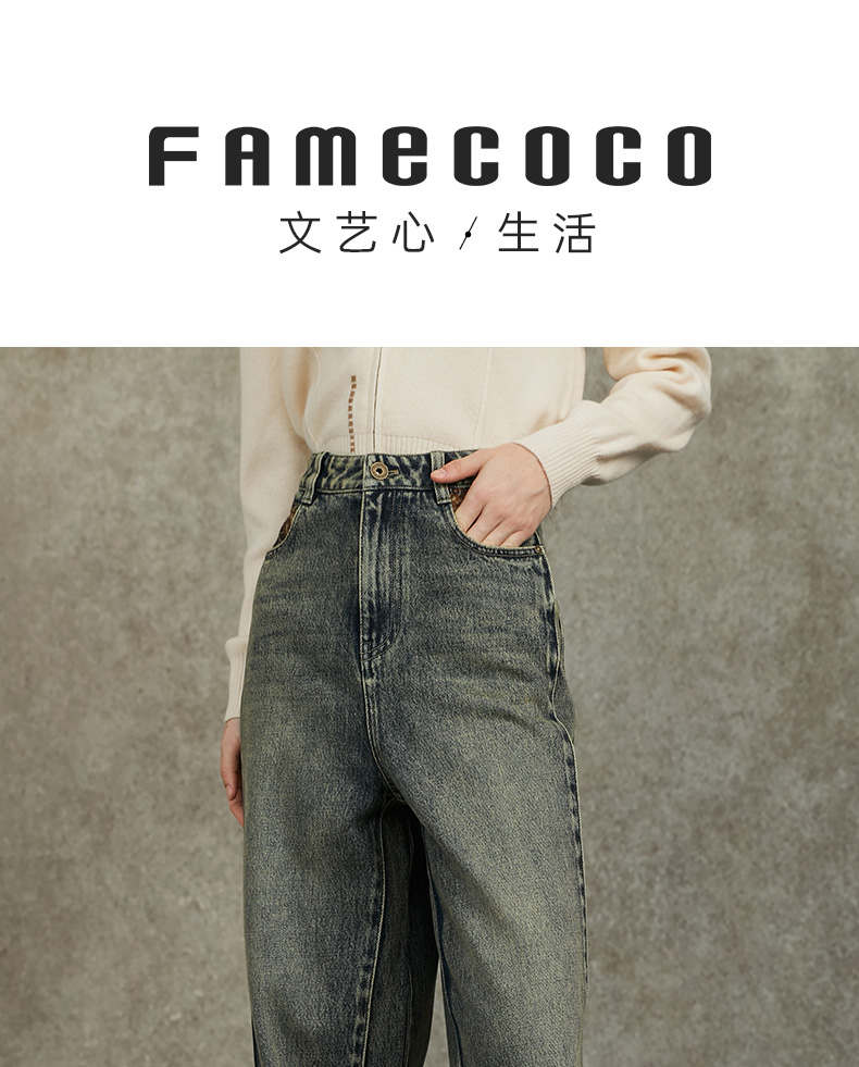 Famecoco范可儿显瘦高腰直筒牛仔裤复古水洗做旧宽松FAC6GA018