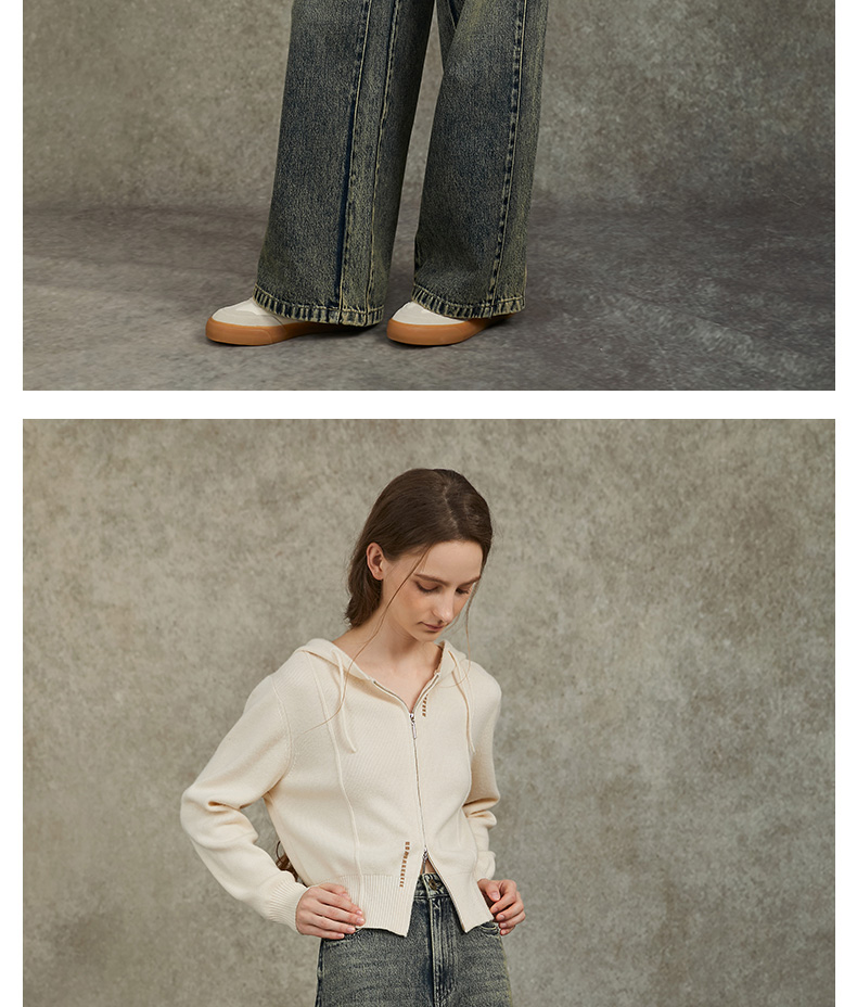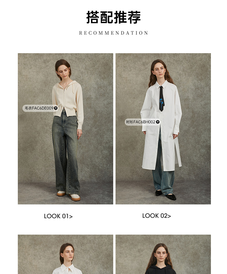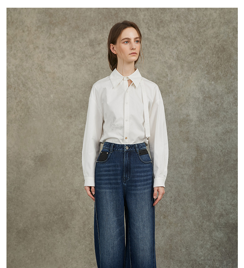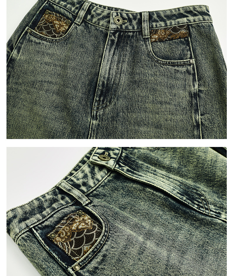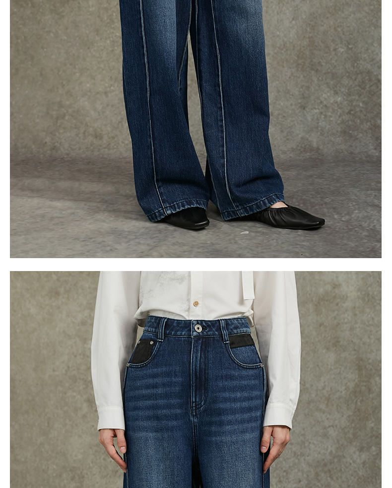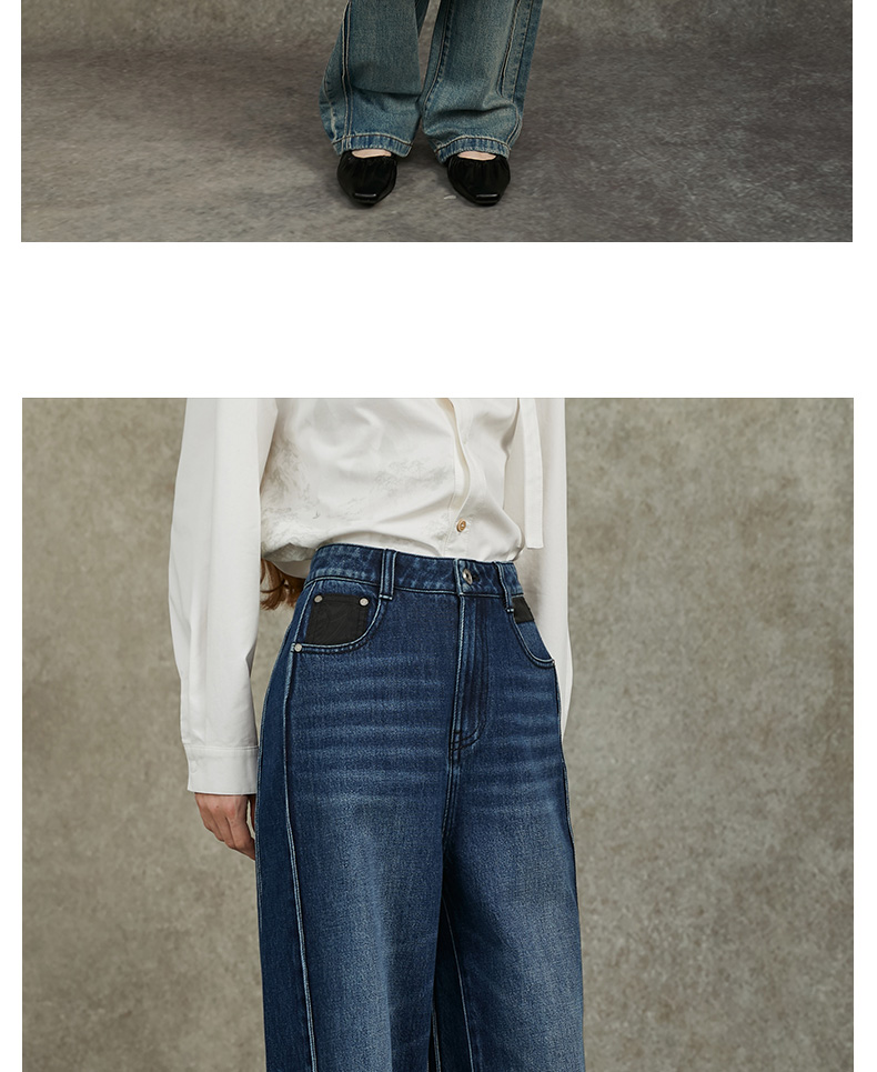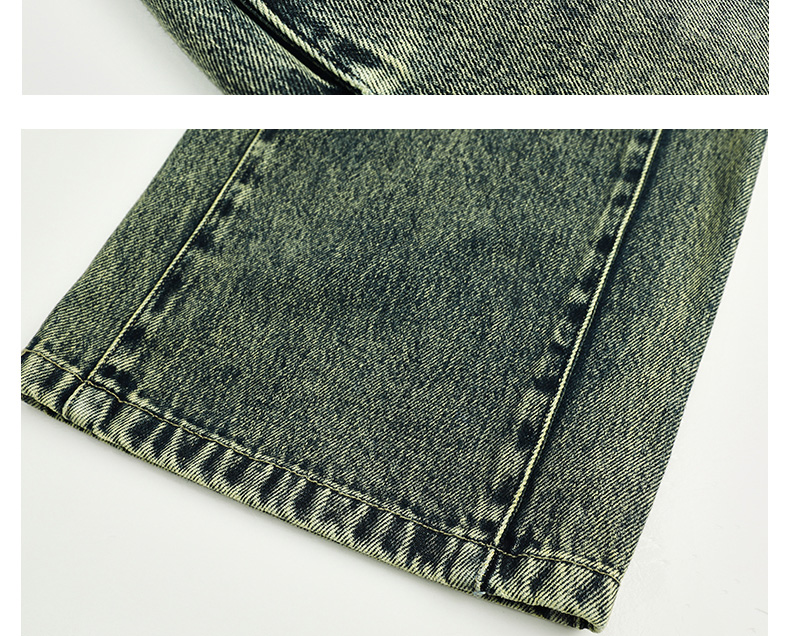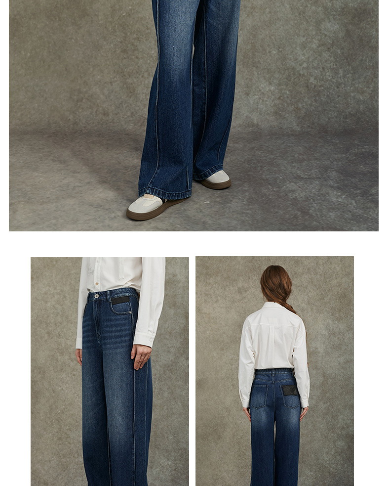 Famecoco范可儿显瘦高腰直筒牛仔裤复古水洗做旧宽松FAC6GA018