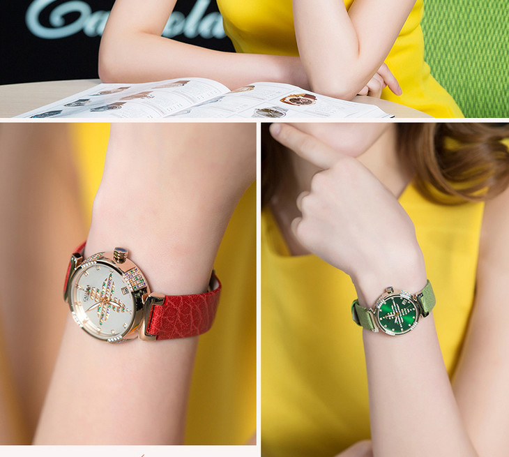 卡罗莱女士手表女表时尚全自动机械表四叶草紫色防水镶钻 CA1186ML