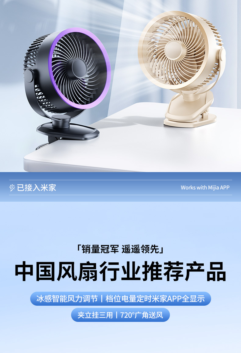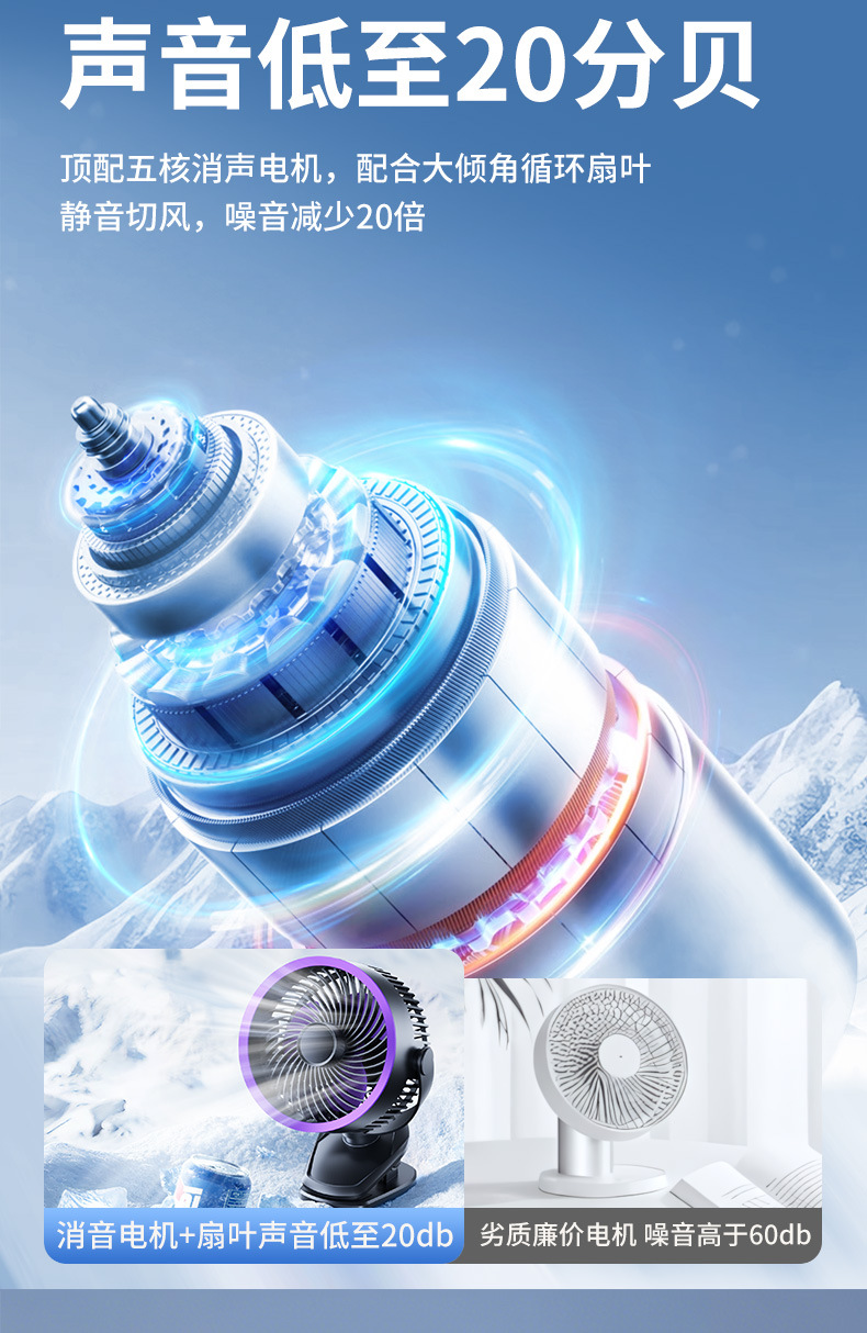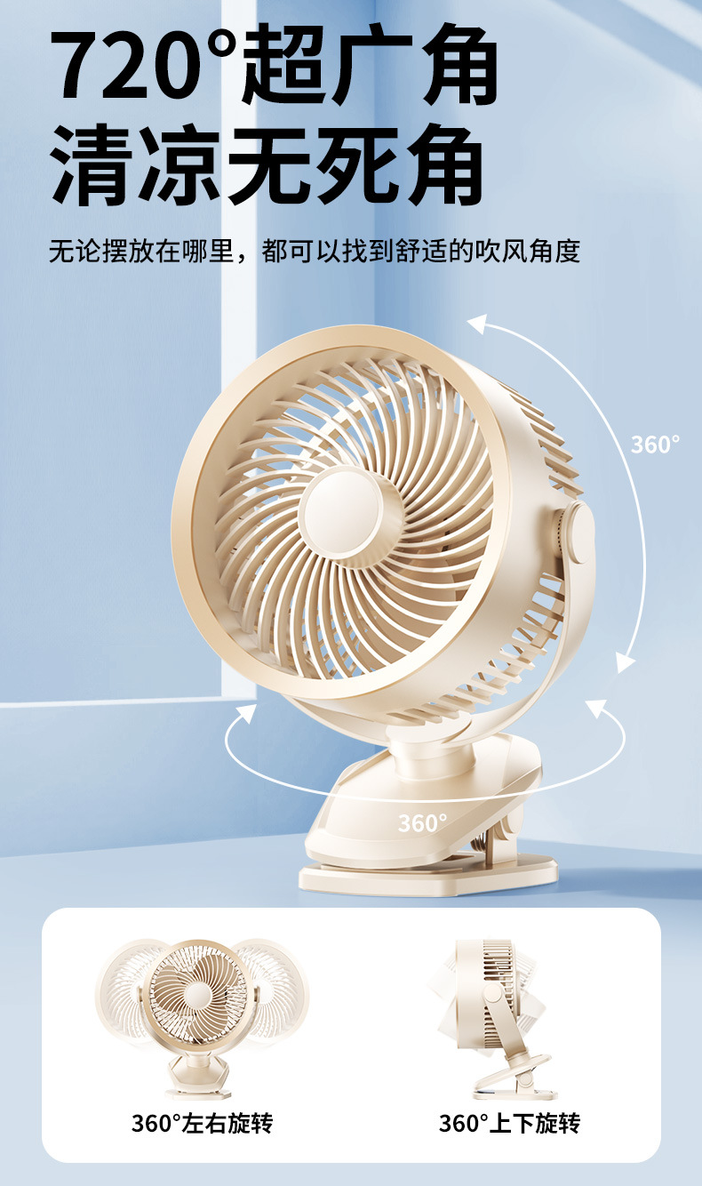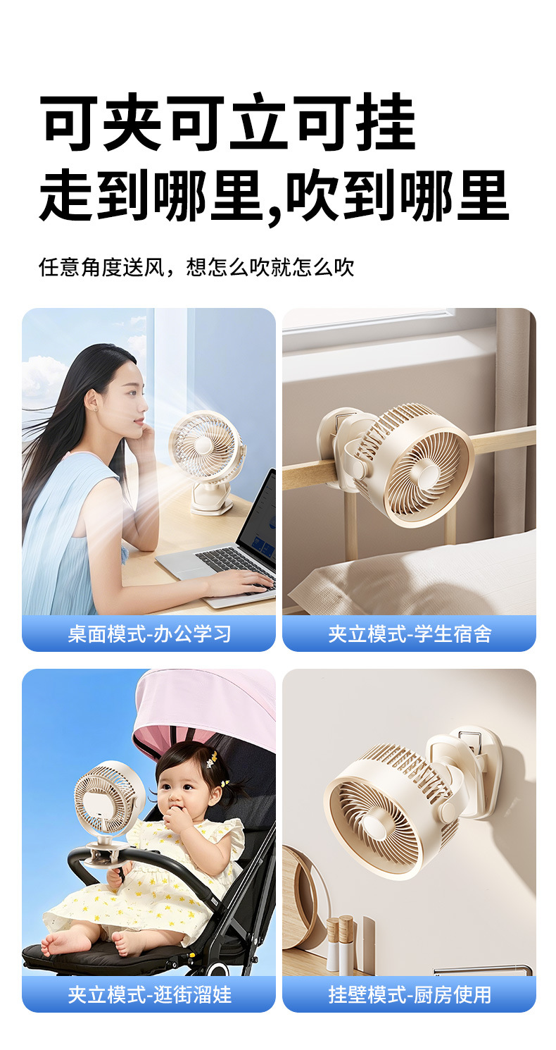 【冰感循环❗️夹立挂三用】USB桌面小风扇迷你办公室风扇台式学生USB大风力静音夹子风扇。ya
